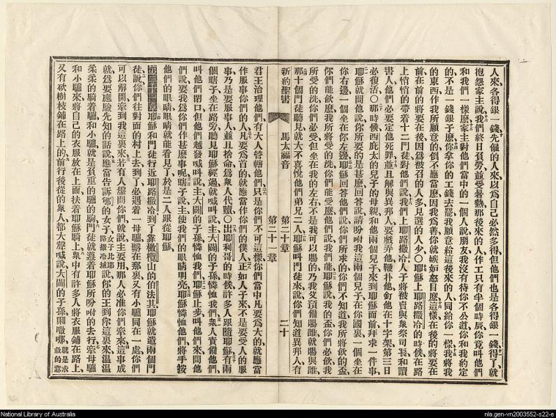 1889年新约全书 马太福音 20 章 10 节到 21 章 9 节