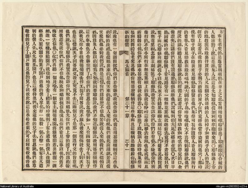 1889年新约全书 马太福音 21 章 10 节到 21 章 38 节