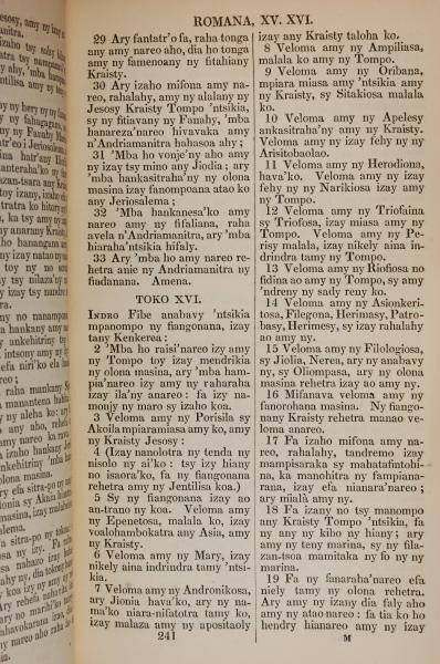 1830年Teny N'andriamanitra 罗马书 15 章 29 节到 16 章 19 节