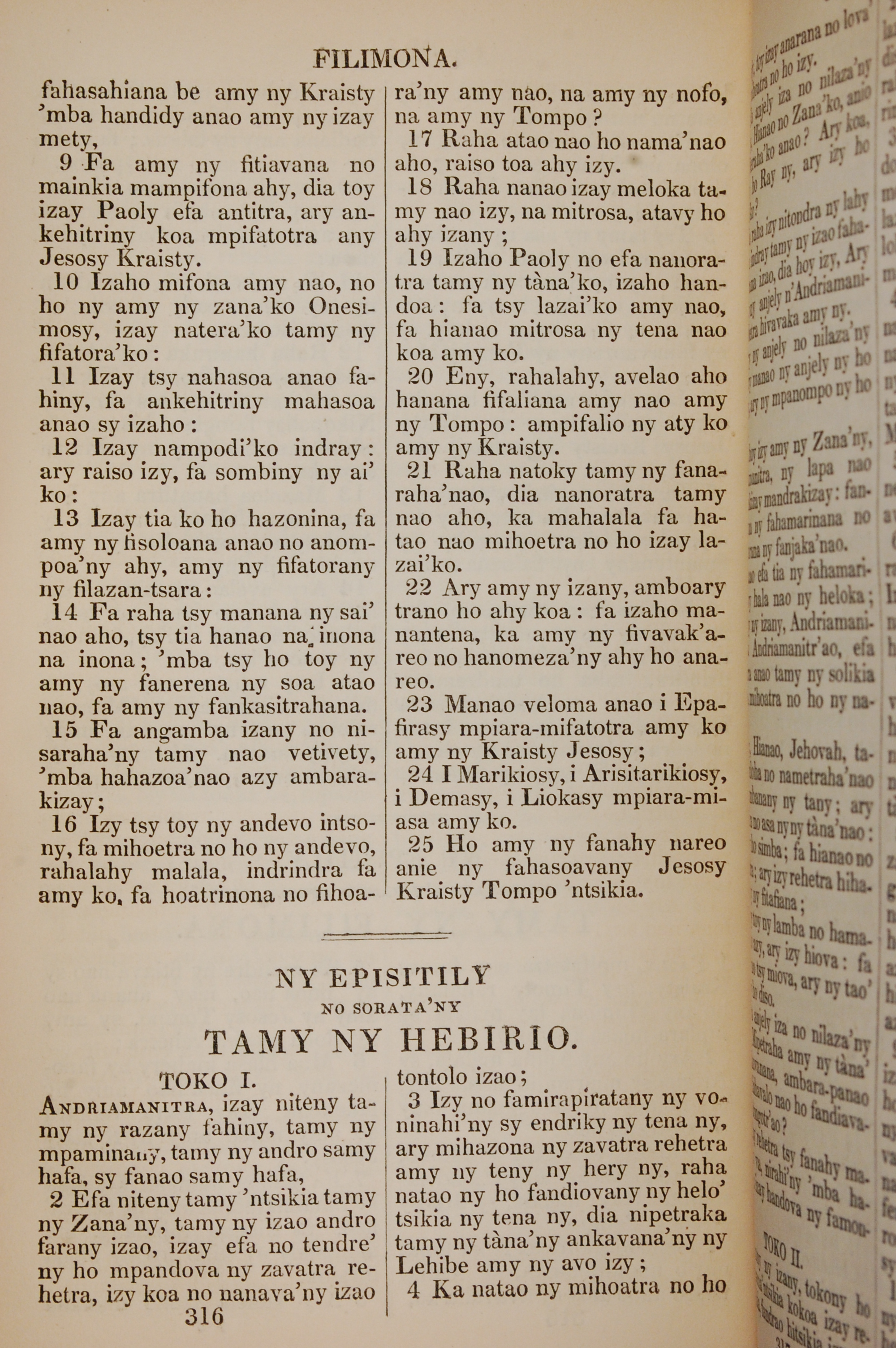 1830年Teny N'andriamanitra 希伯来书 1 章 1 节到 1 章 4 节