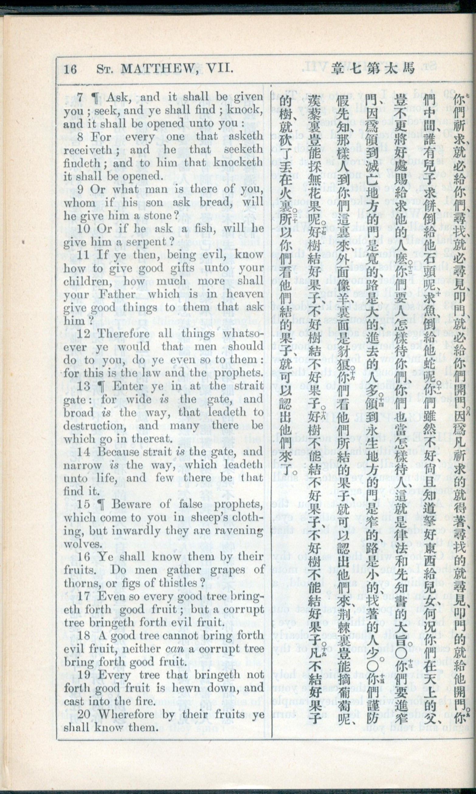 1908年新約全書(中西字) 馬太福音 7 章 7 節到 7 章 20 節