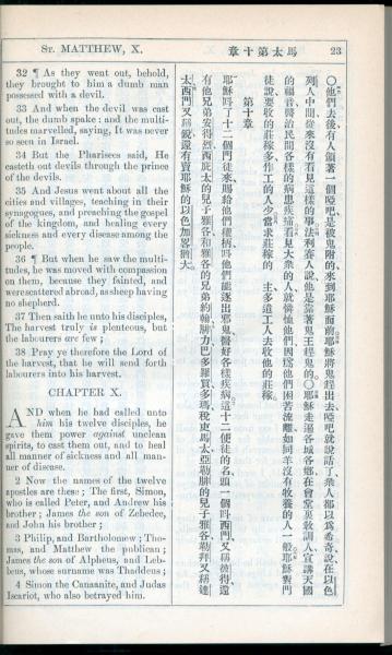 1908年新約全書(中西字) 馬太福音 9 章 32 節到 10 章 4 節