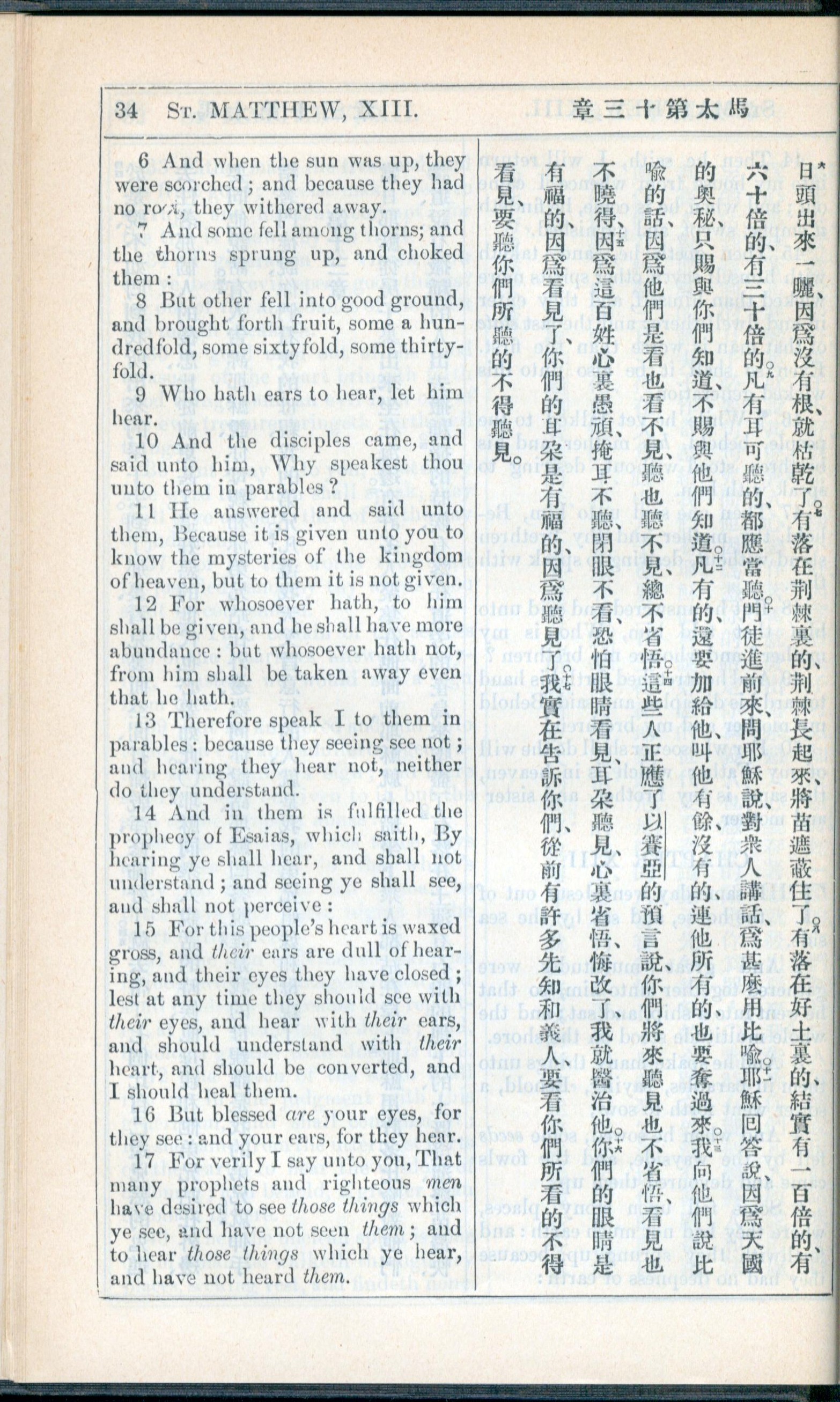 1908年新約全書(中西字) 馬太福音 13 章 6 節到 13 章 17 節