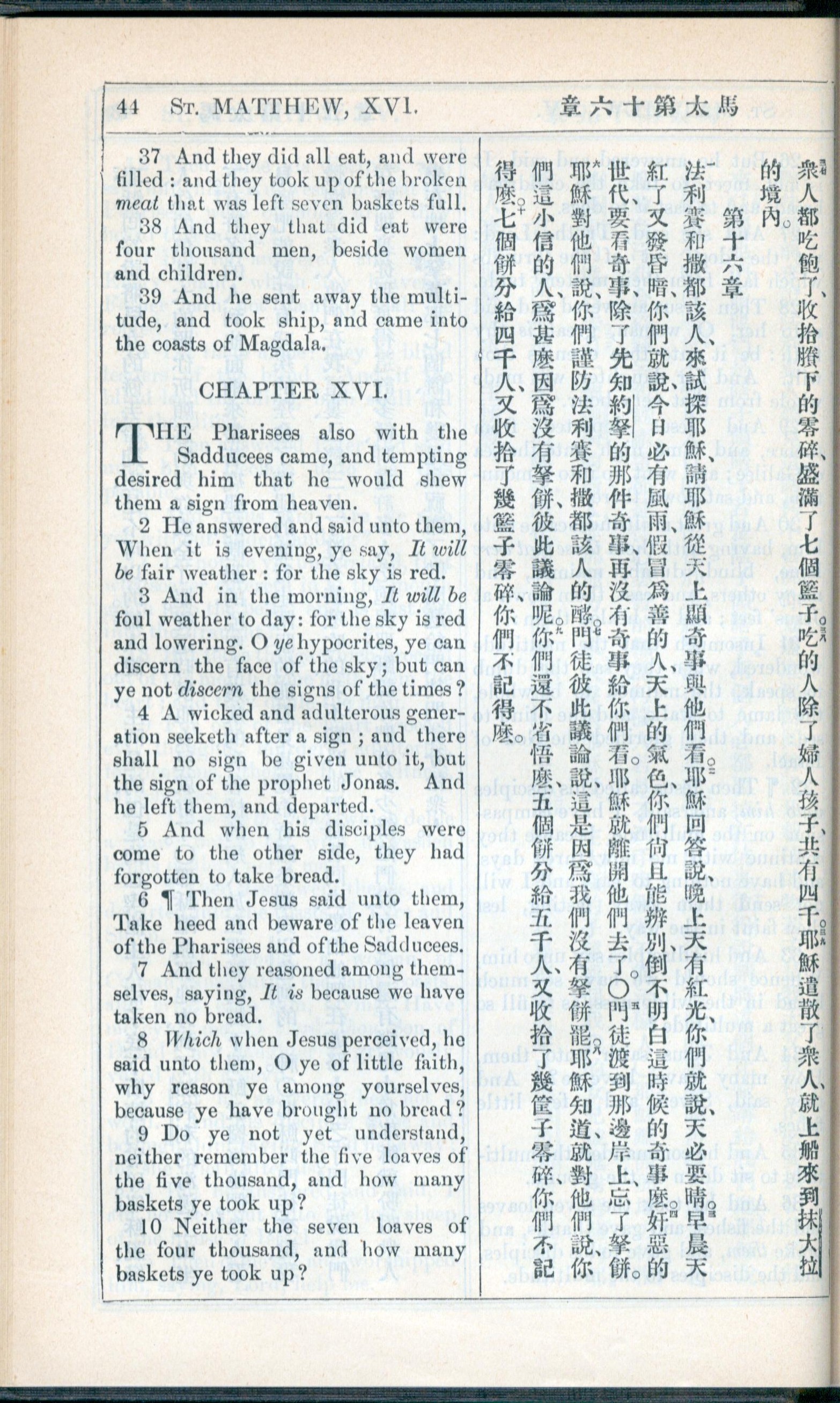 1908年新約全書(中西字) 馬太福音 15 章 37 節到 16 章 10 節