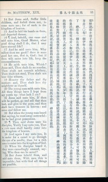 1908年新約全書(中西字) 馬太福音 19 章 14 節到 19 章 26 節