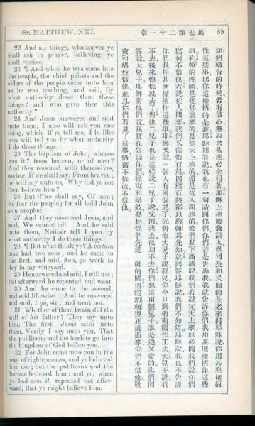 1908年新約全書(中西字) 馬太福音 21 章 22 節到 21 章 32 節
