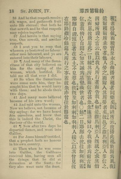 1883年約翰傳福音書 約翰福音 4 章 36 節到 4 章 45 節