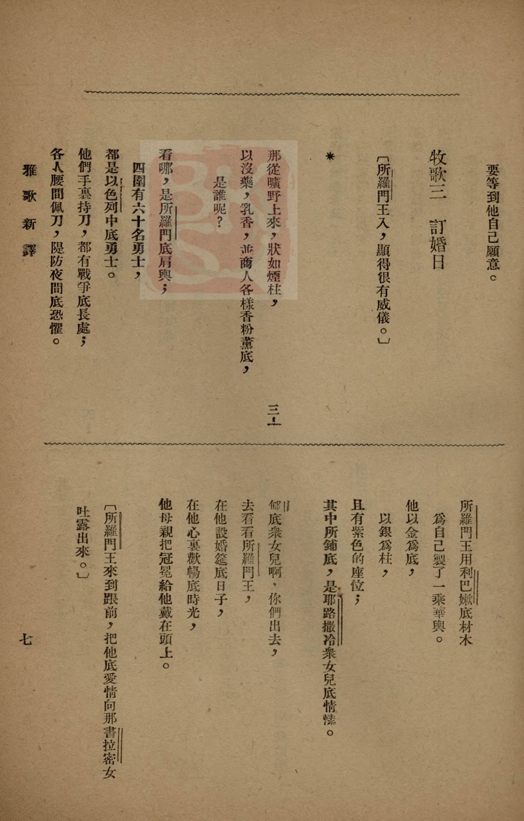 1921年雅歌新譯 雅歌 3 章 6 節到 3 章 11 節