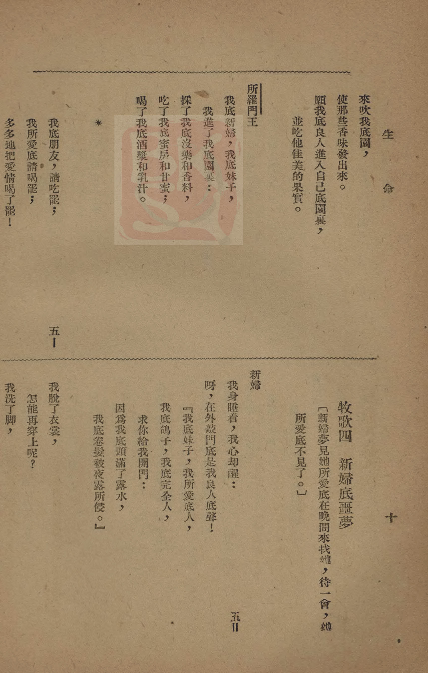 1921年雅歌新譯 雅歌 4 章 16 節到 5 章 3 節