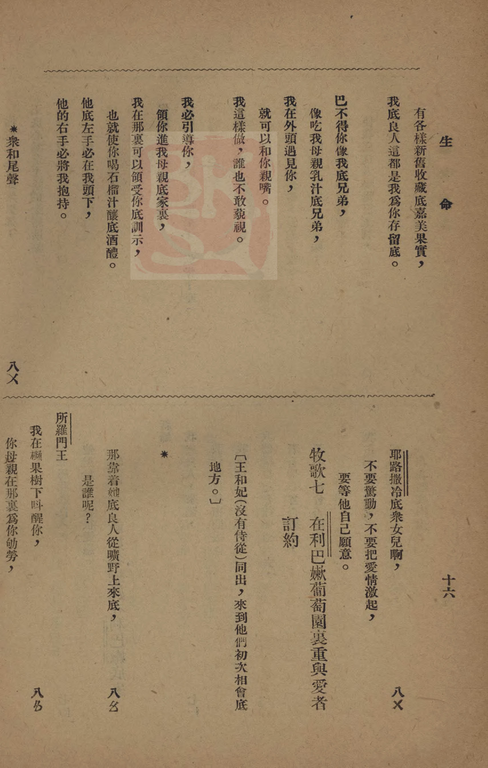 1921年雅歌新譯 雅歌 8 章 1 節到 8 章 5 節