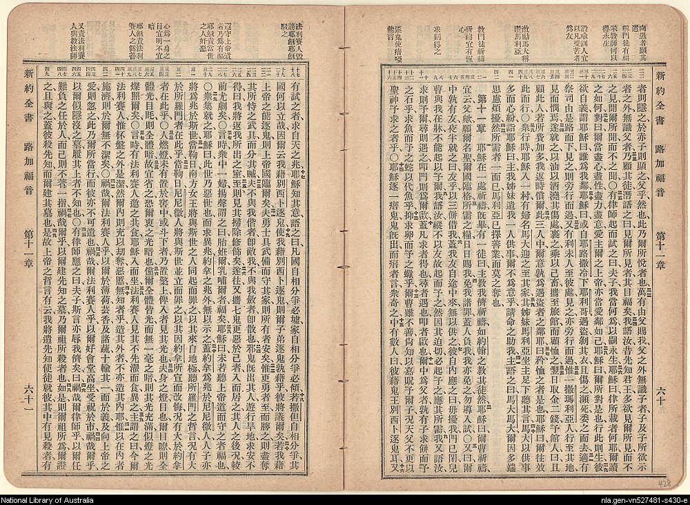 1919年新旧约全书(文理和合本) 路加福音 10 章 22 节到 11 章 49 节