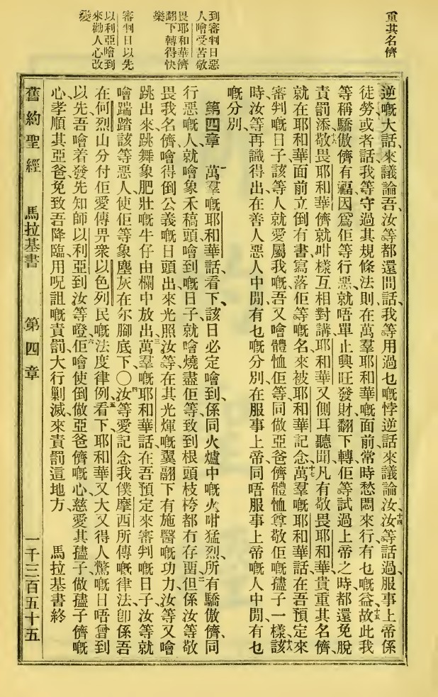 1923年新旧约全书 玛拉基书 3 章 13 节到 4 章 6 节