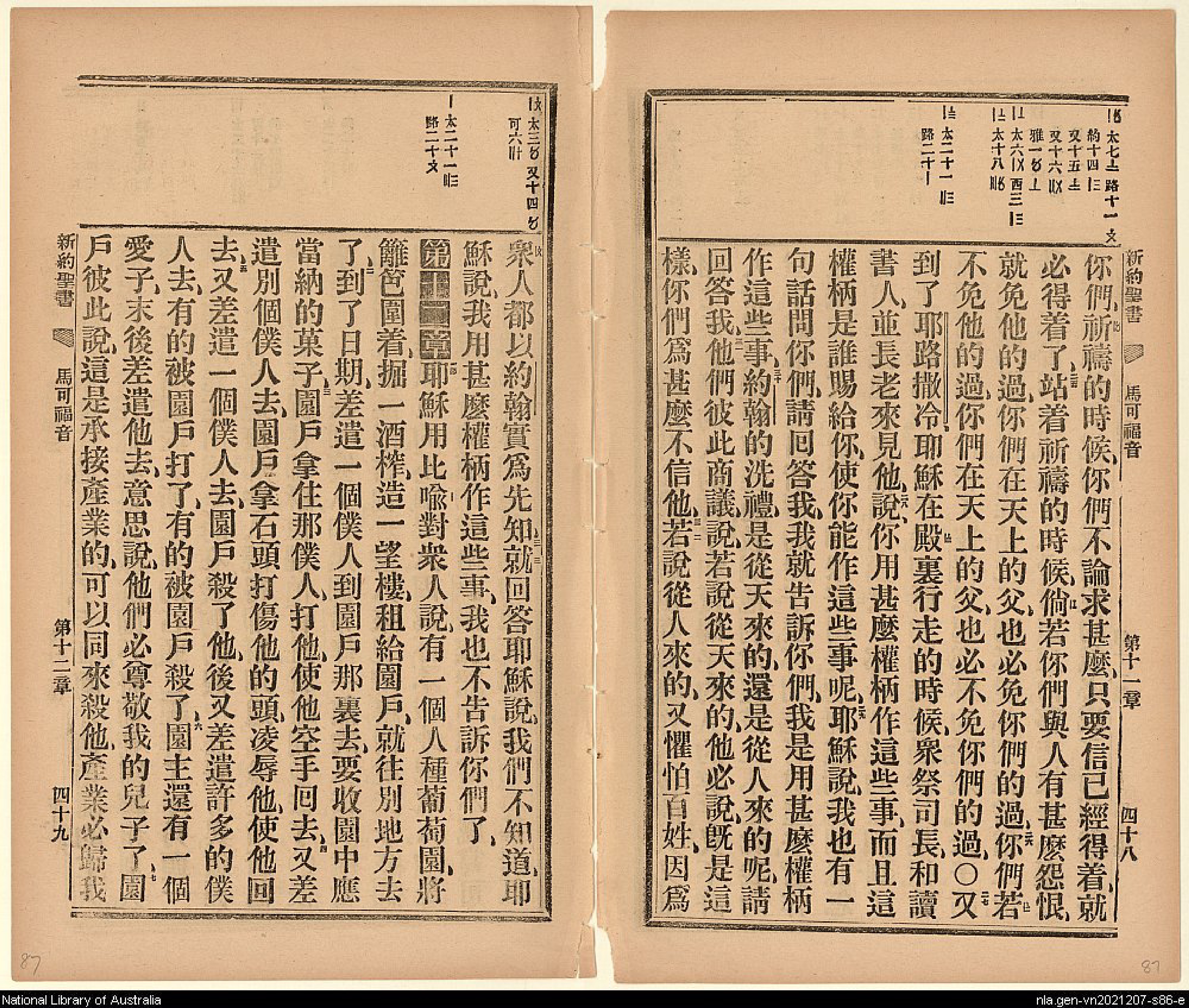 1906年新约全书 马可福音 11 章 25 节到 12 章 7 节