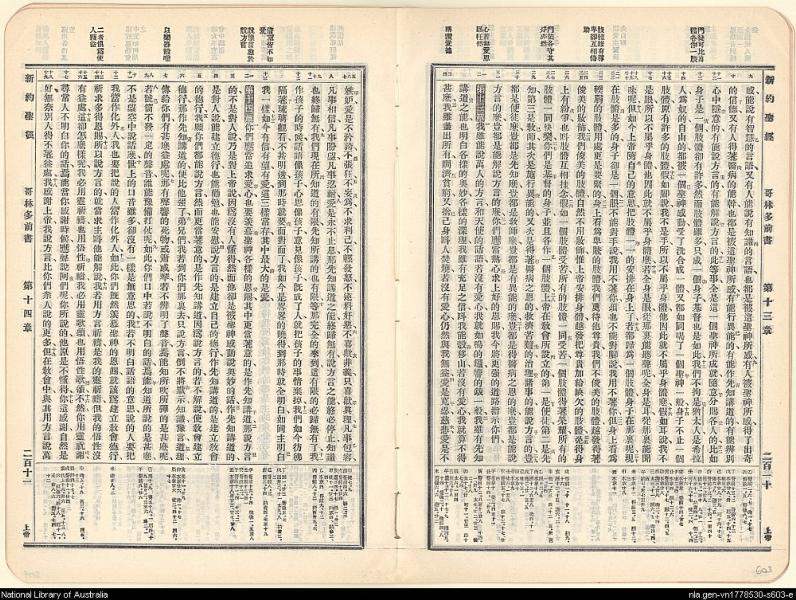 1909年新旧约全书 哥林多前书 12 章 9 节到 14 章 19 节