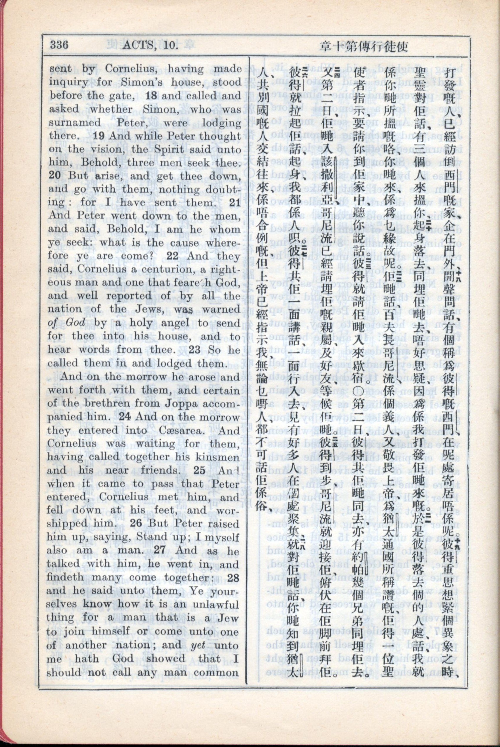 1931年新约全书广东话新译本与美国新译英文 使徒行传 10 章 18 节到 10 章 28 节