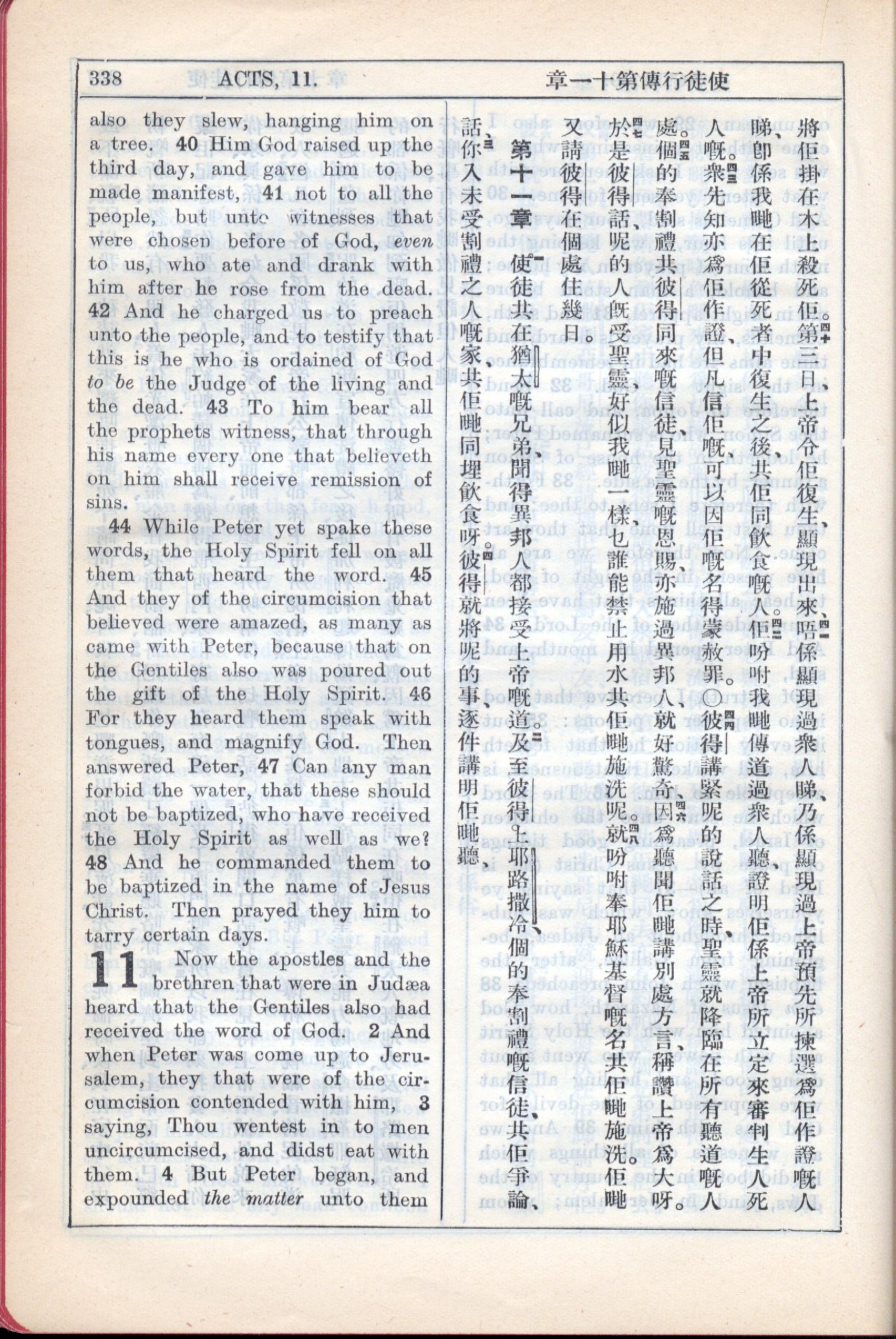 1931年新约全书广东话新译本与美国新译英文 使徒行传 10 章 40 节到 11 章 4 节