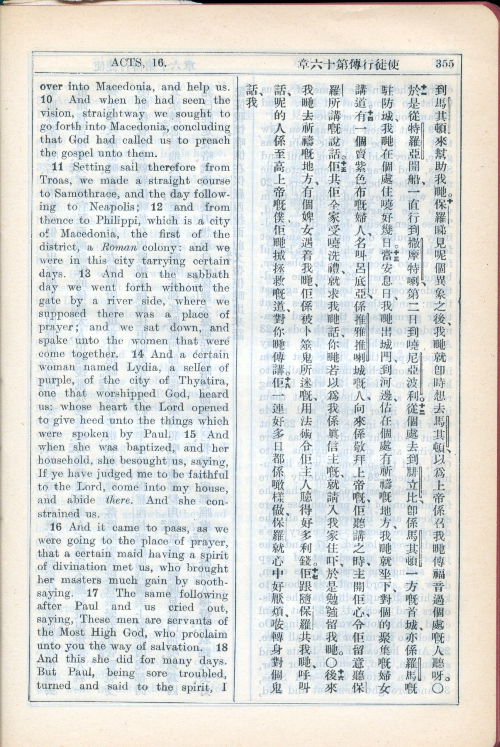 1931年新约全书广东话新译本与美国新译英文 使徒行传 16 章 10 节到 16 章 18 节