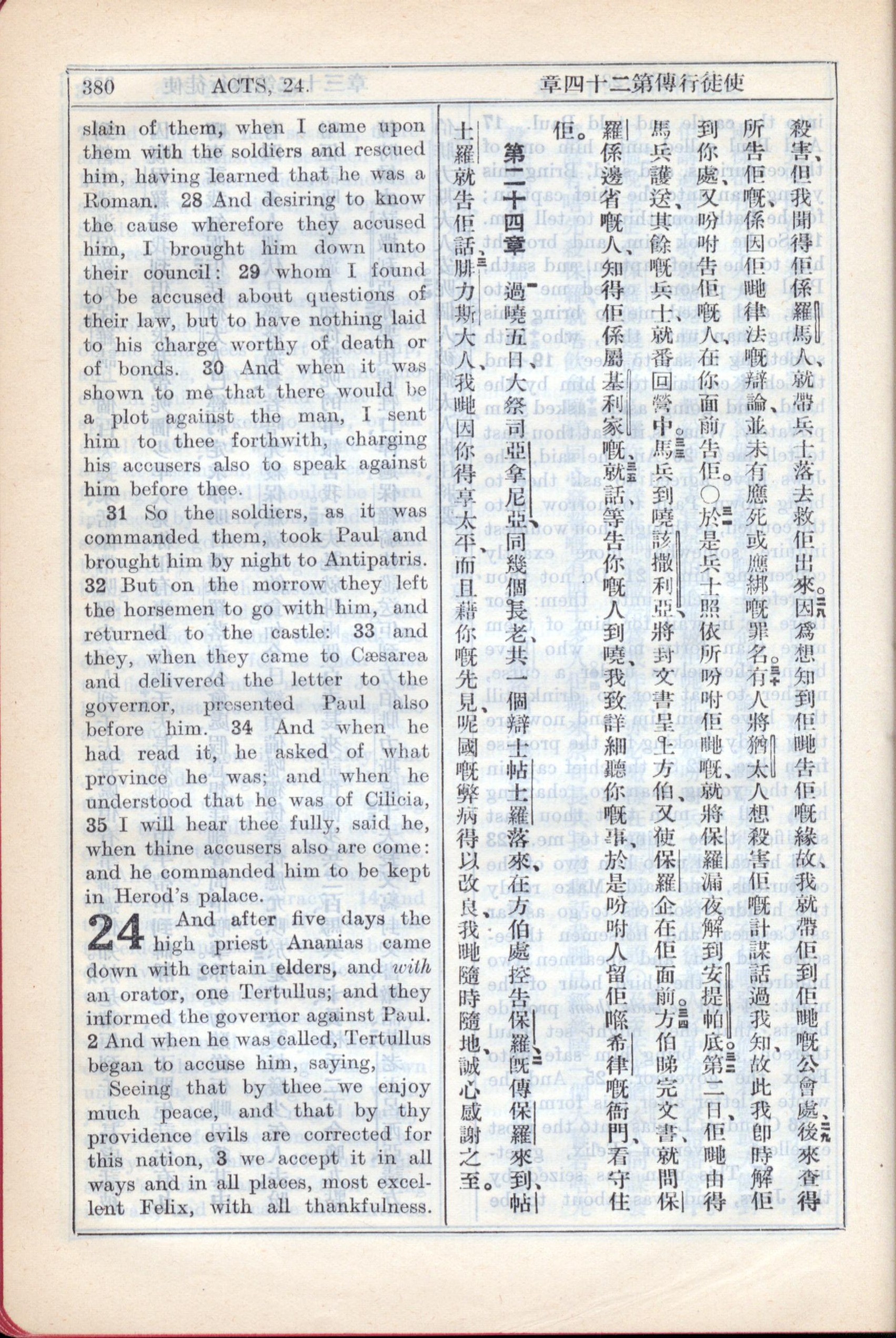 1931年新约全书广东话新译本与美国新译英文 使徒行传 23 章 28 节到 24 章 3 节