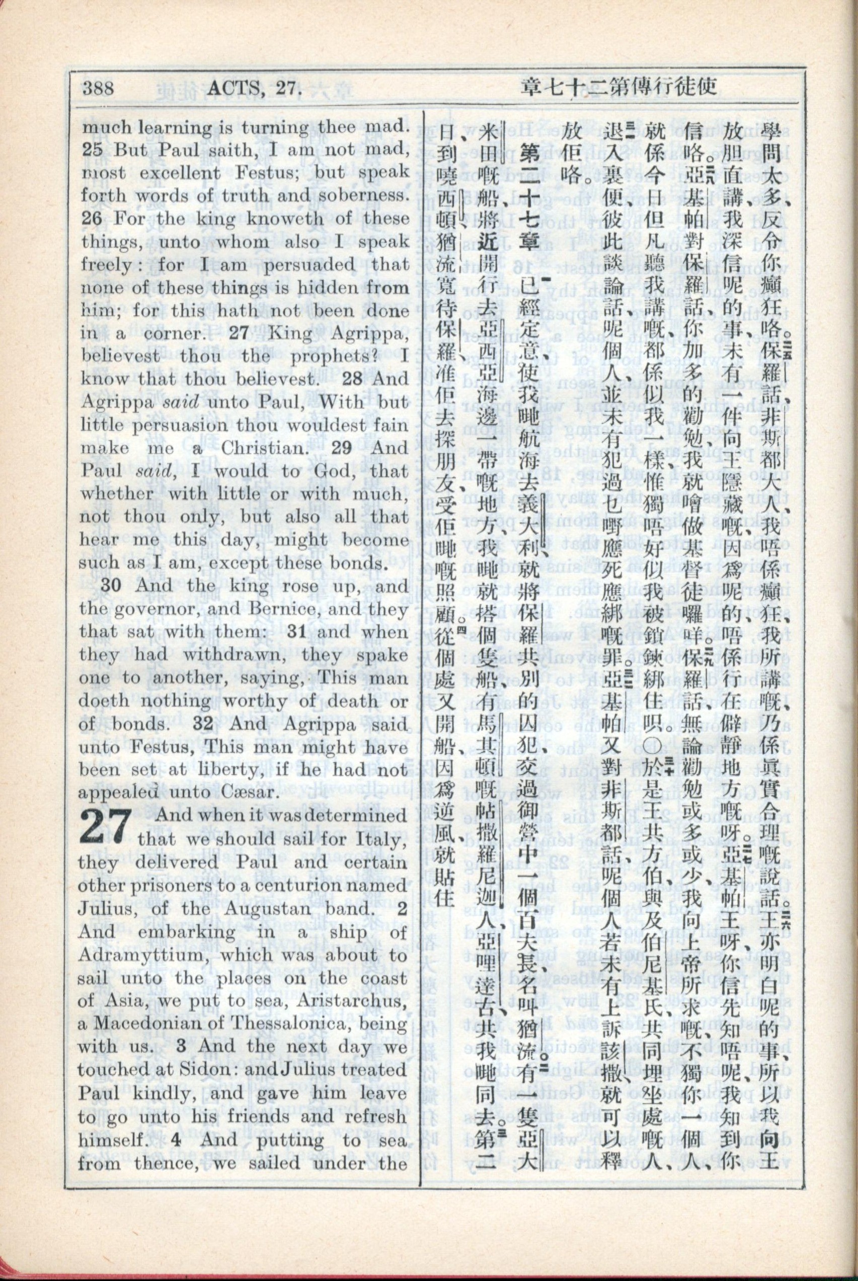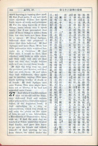 1931年新约全书广东话新译本与美国新译英文 使徒行传 26 章 25 节到 27 章 4 节