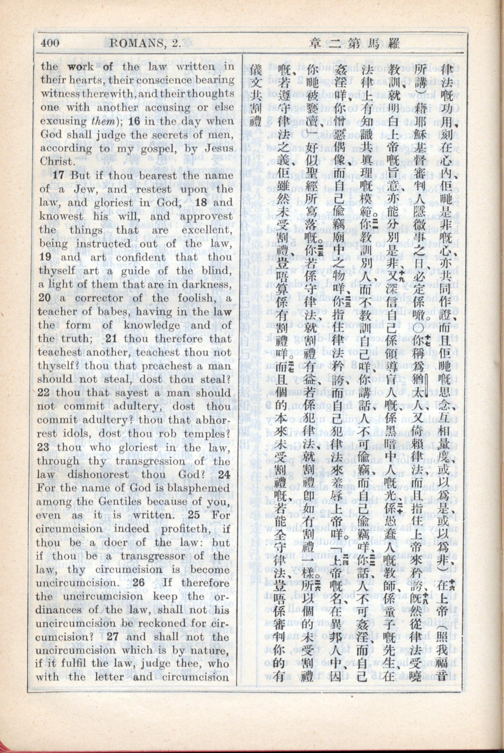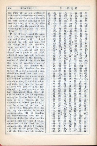 1931年新约全书广东话新译本与美国新译英文 罗马书 2 章 15 节到 2 章 27 节