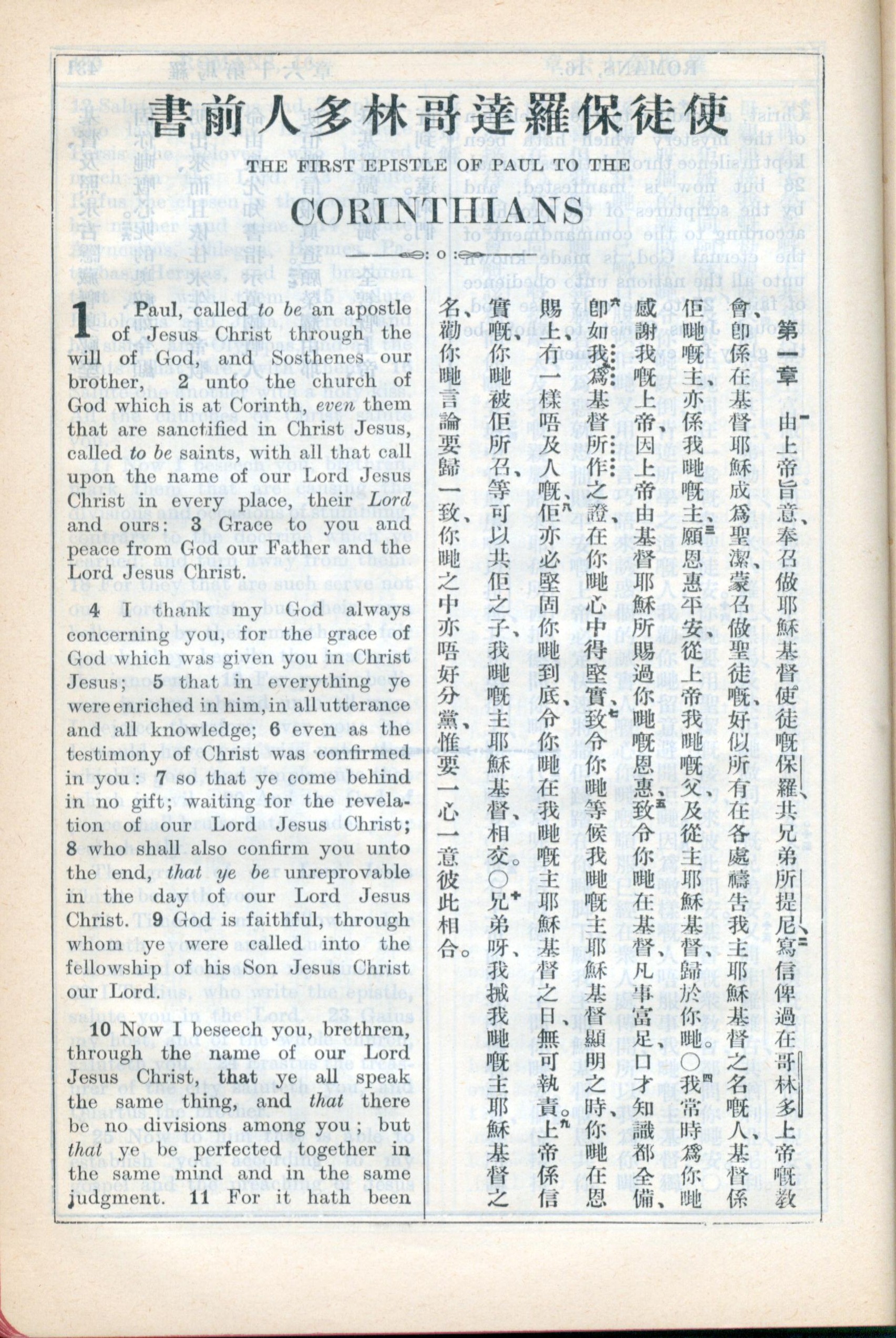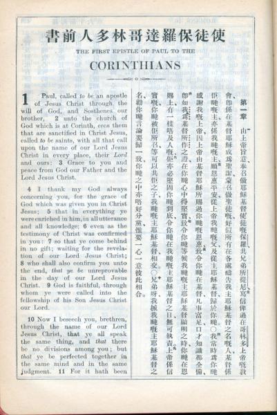 1931年新约全书广东话新译本与美国新译英文 哥林多前书 1 章 1 节到 1 章 10 节