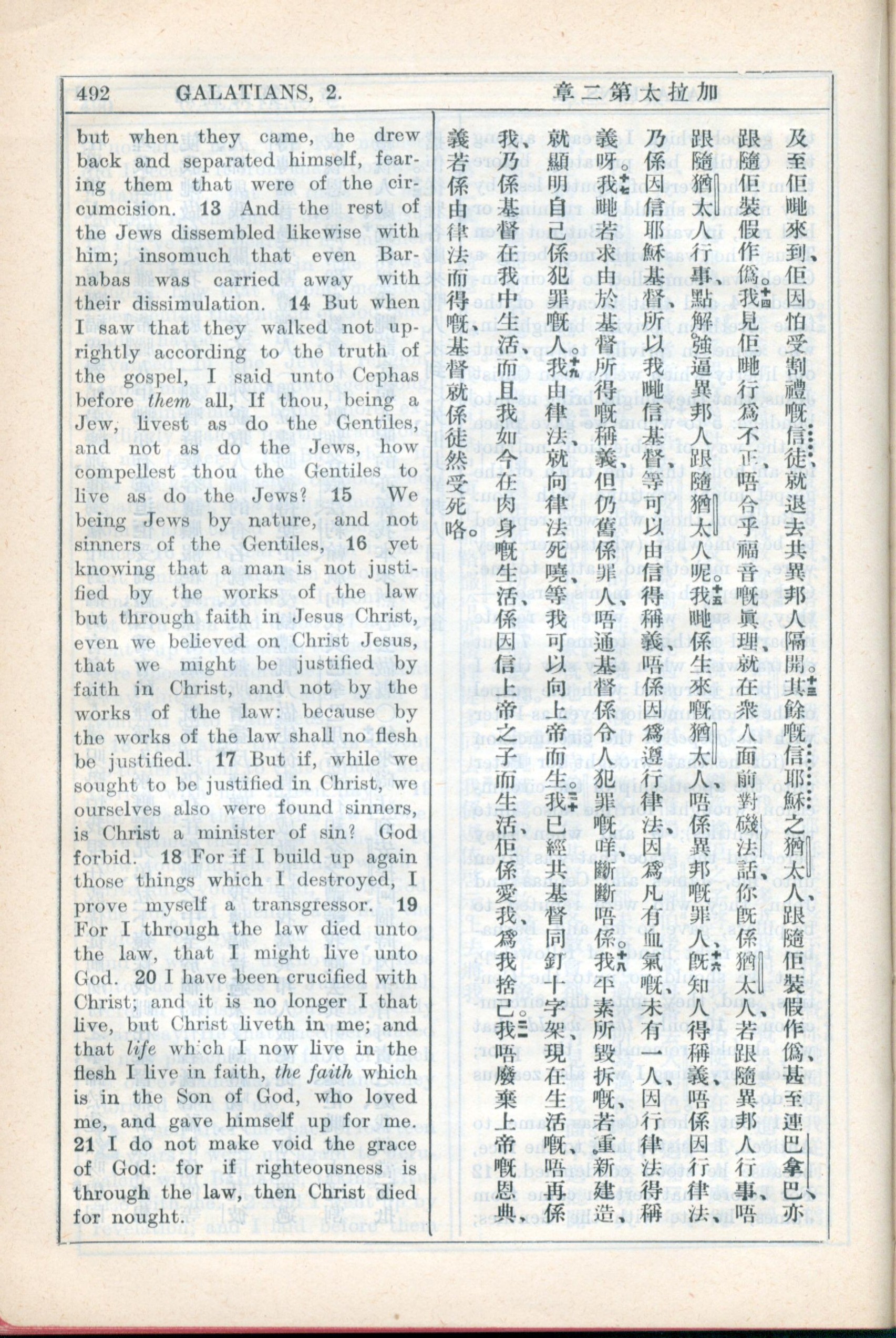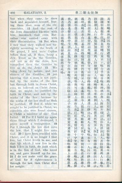 1931年新约全书广东话新译本与美国新译英文 加拉太书 2 章 13 节到 2 章 21 节