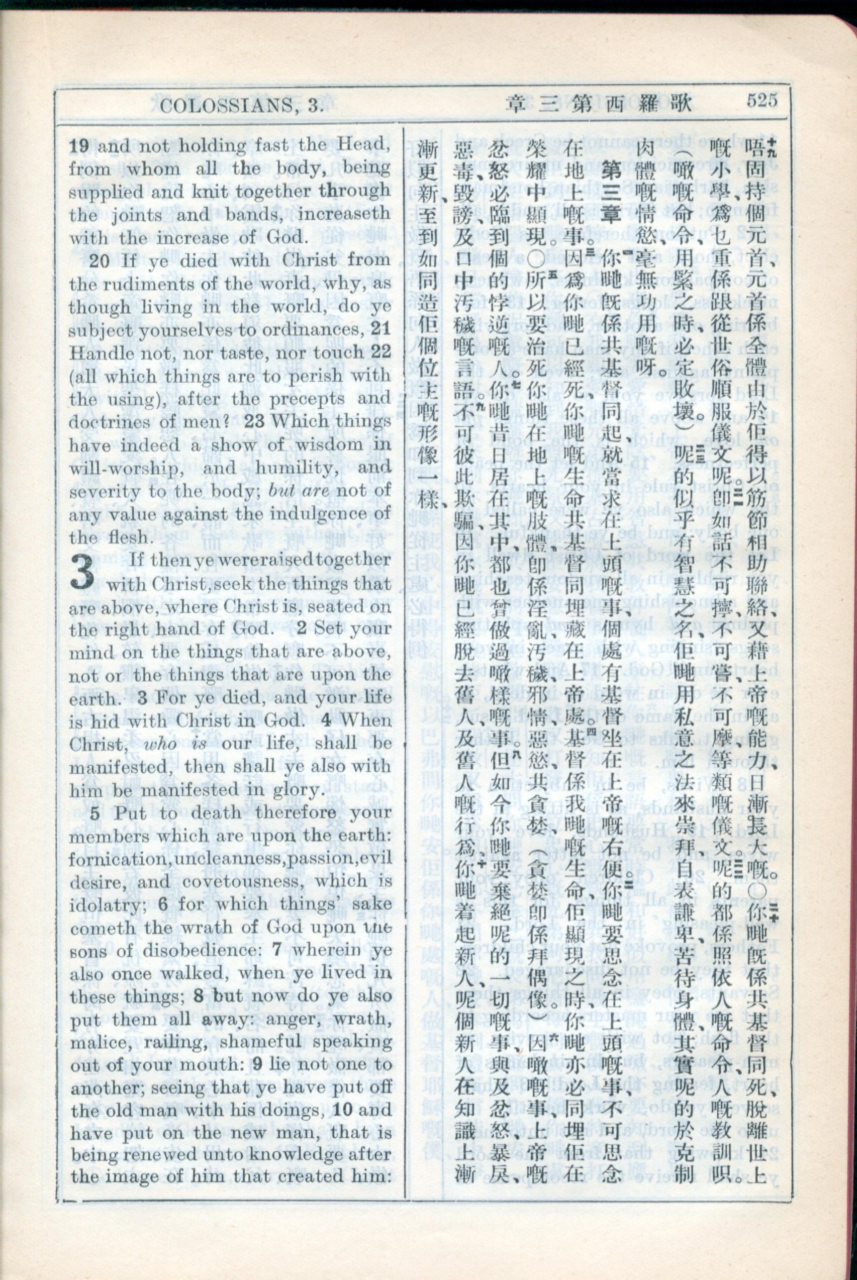 1931年新约全书广东话新译本与美国新译英文 歌罗西书 2 章 19 节到 3 章 10 节