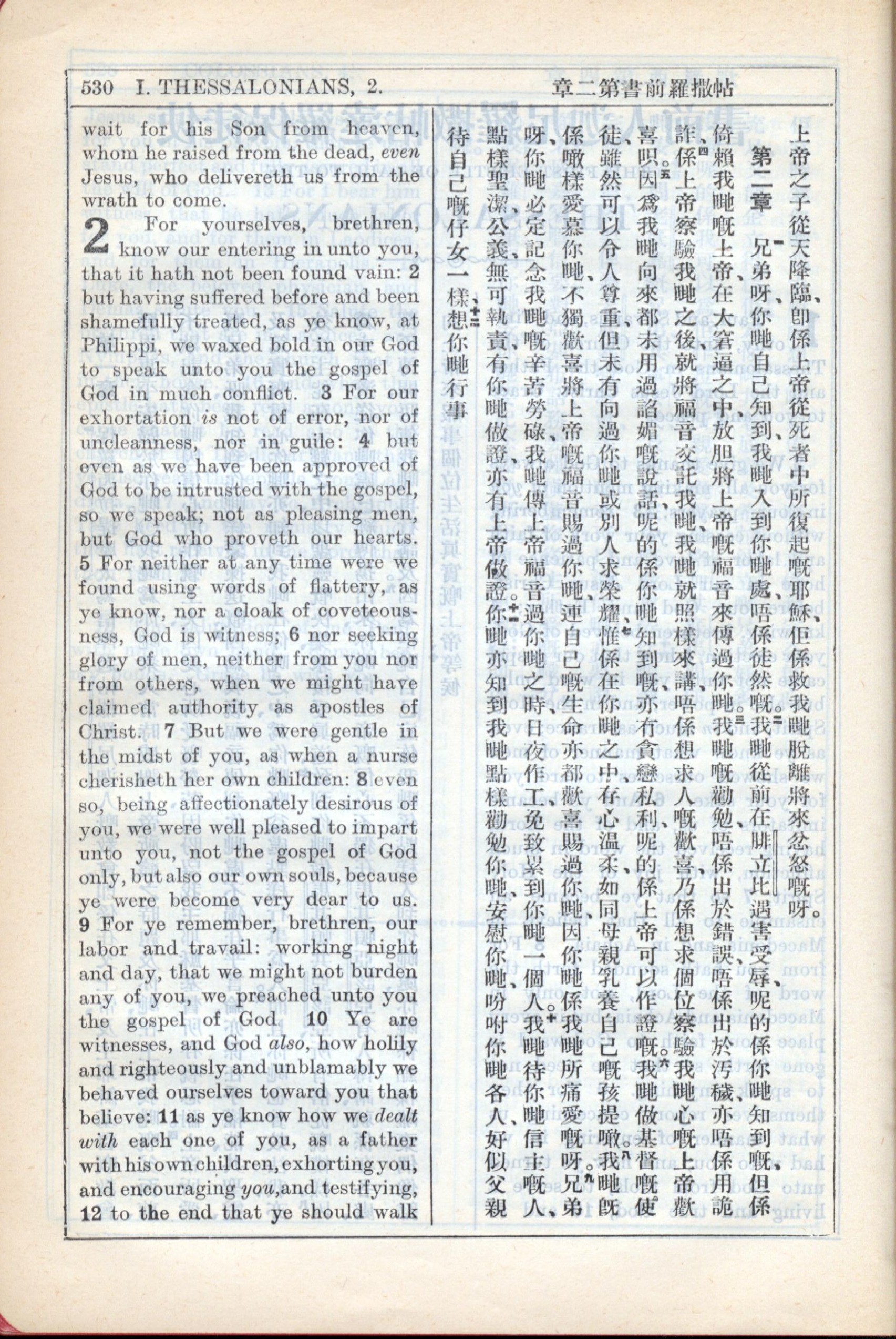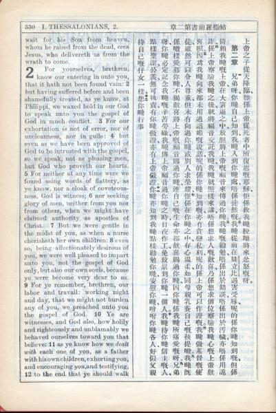 1931年新约全书广东话新译本与美国新译英文 帖撒罗尼迦前书 1 章 10 节到 2 章 12 节
