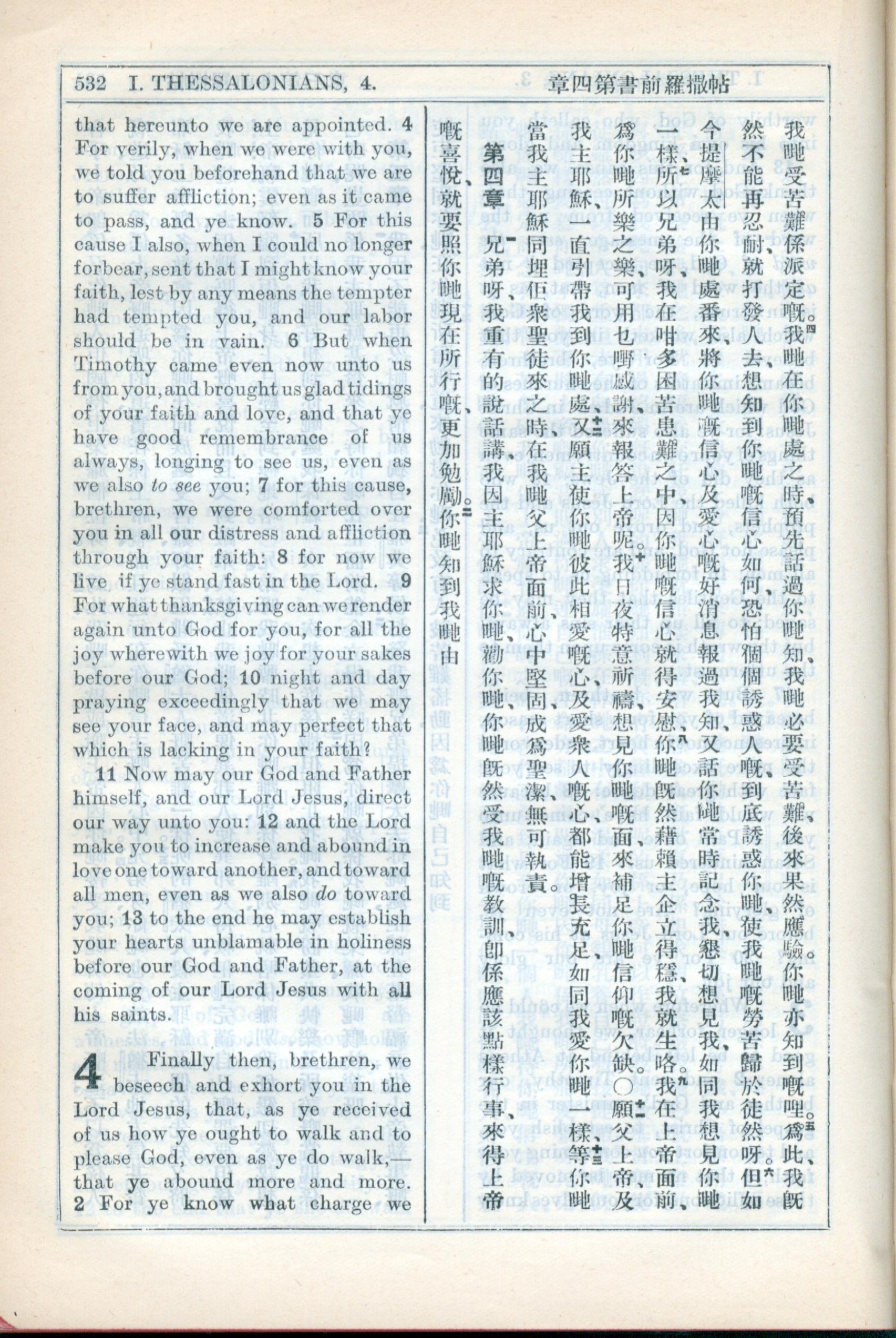1931年新约全书广东话新译本与美国新译英文 帖撒罗尼迦前书 3 章 4 节到 4 章 2 节