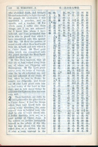 1931年新约全书广东话新译本与美国新译英文 提摩太后书 1 章 11 节到 2 章 5 节