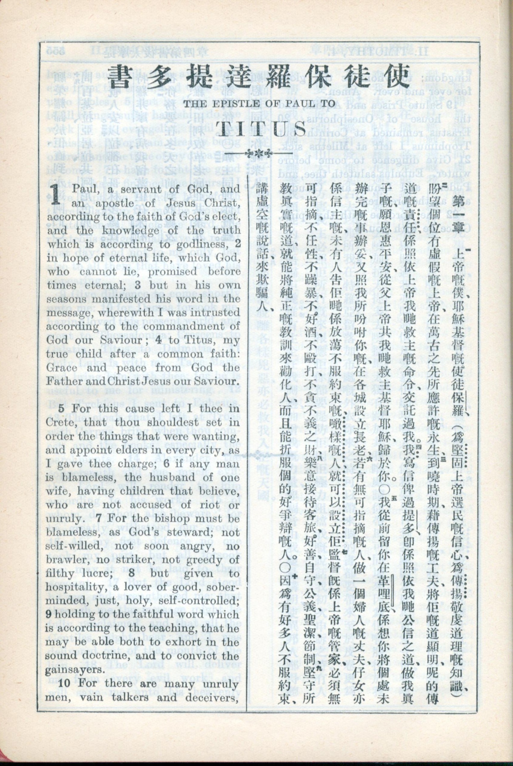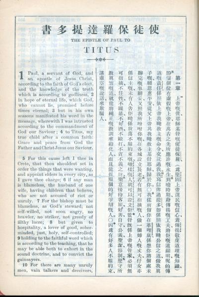 1931年新约全书广东话新译本与美国新译英文 提多书 1 章 1 节到 1 章 10 节