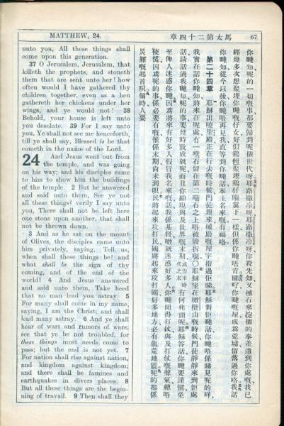 1931年新约全书广东话新译本与美国新译英文 马太福音 23 章 36 节到 24 章 8 节