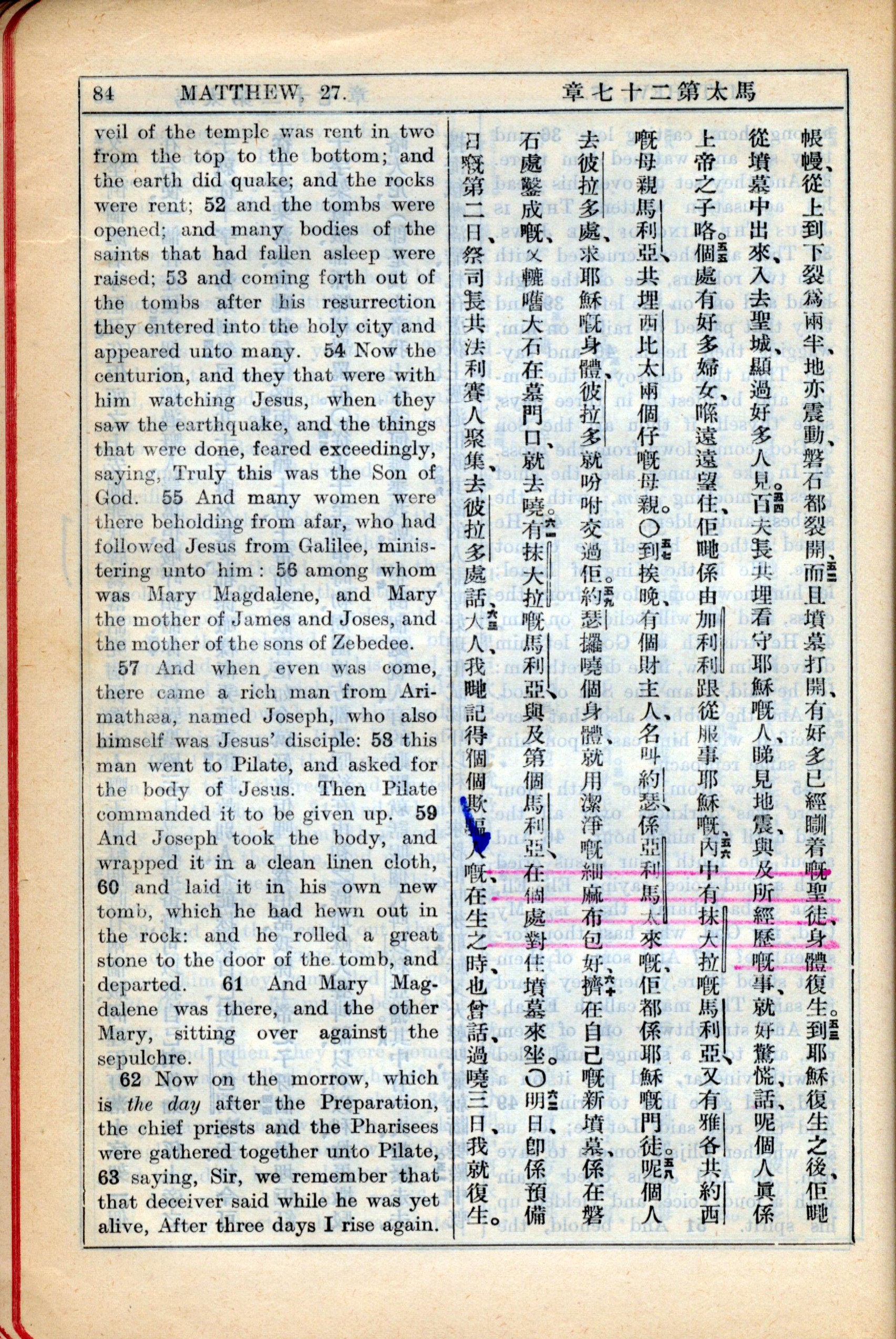 1931年新约全书广东话新译本与美国新译英文 马太福音 27 章 51 节到 27 章 63 节