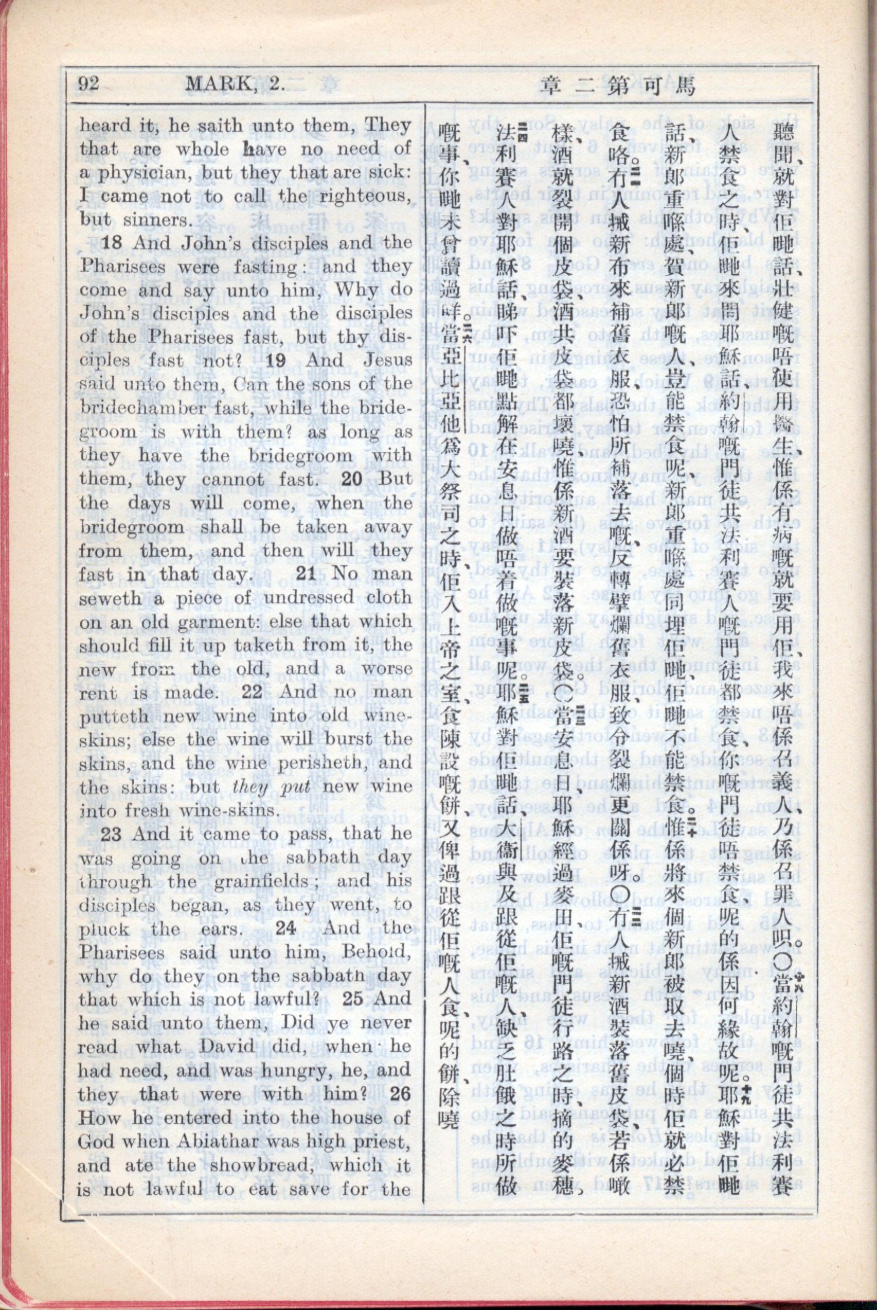 1931年新约全书广东话新译本与美国新译英文 马可福音 2 章 17 节到 2 章 26 节