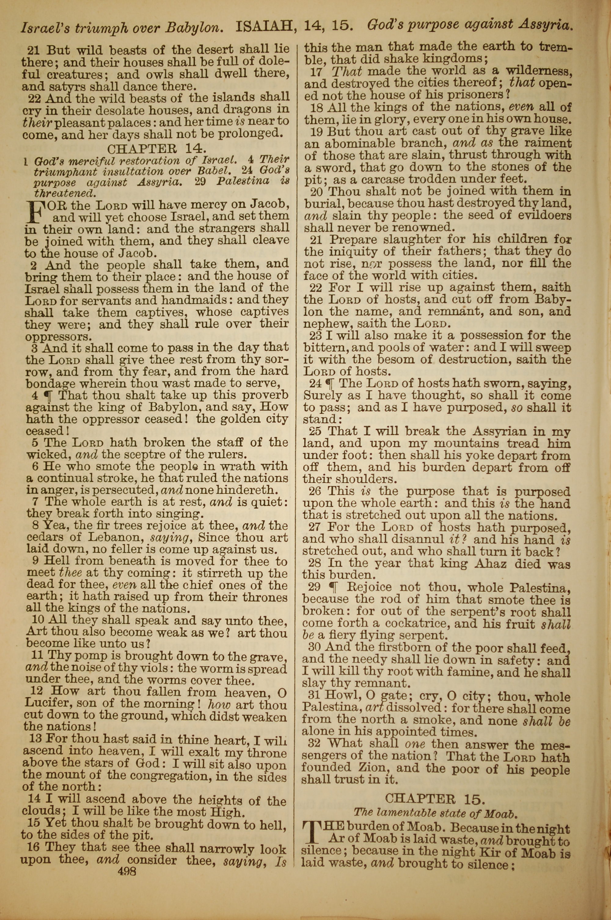 1886年英文圣经 以赛亚书 13 章 21 节到 15 章 1 节