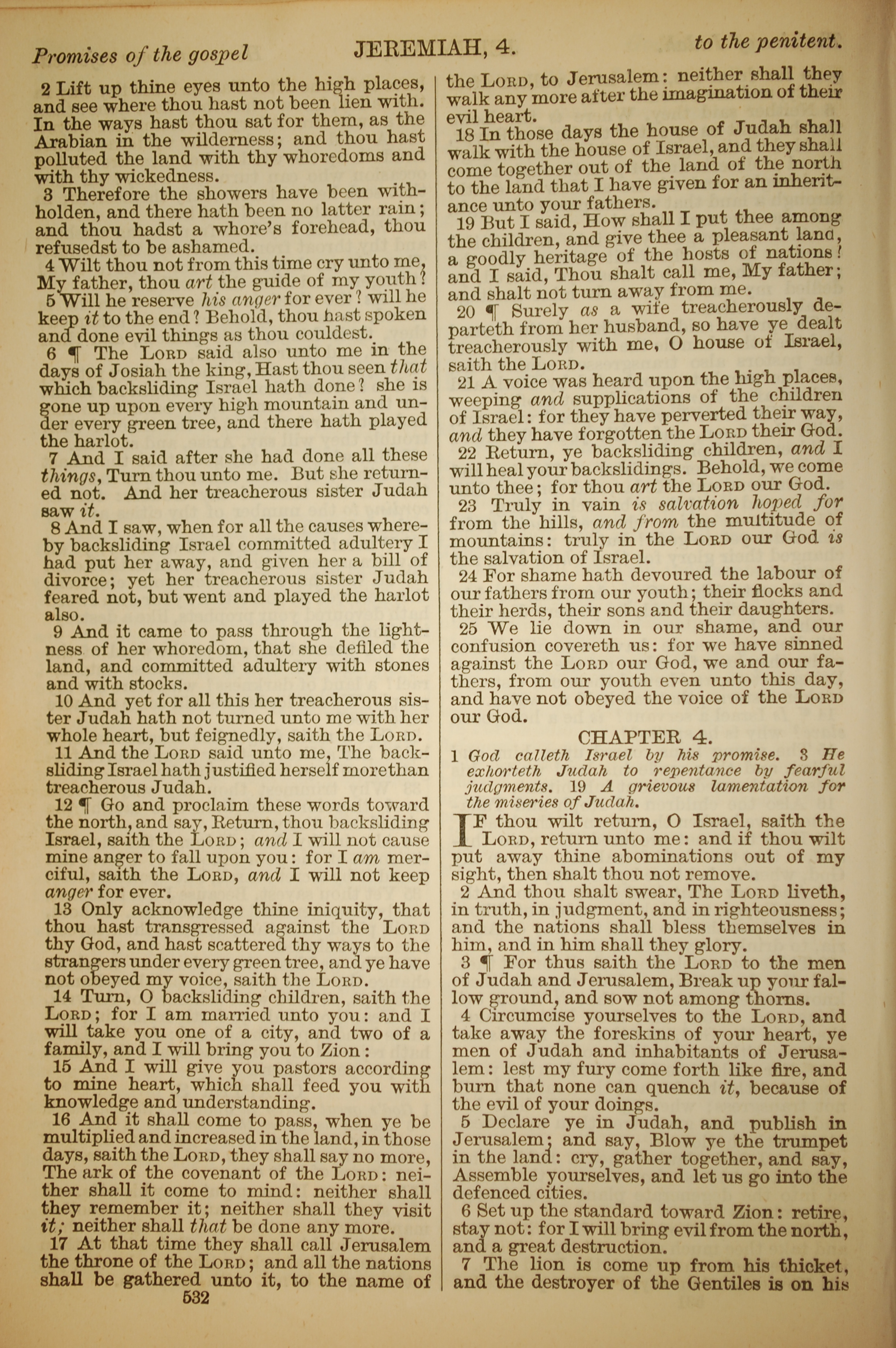 1886年英文圣经 耶利米书 3 章 2 节到 4 章 7 节