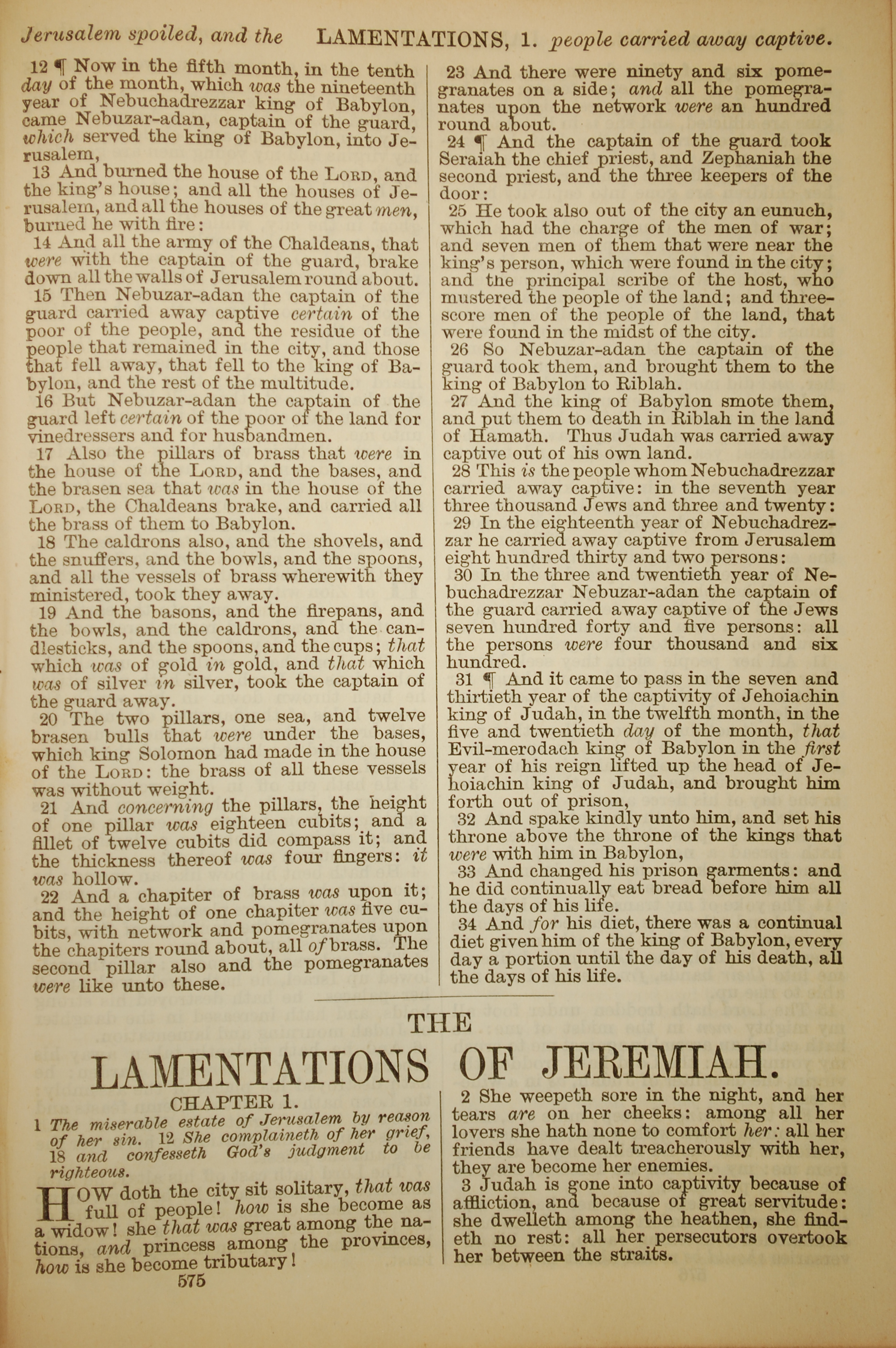 1886年英文圣经 耶利米哀歌 1 章 1 节到 1 章 3 节