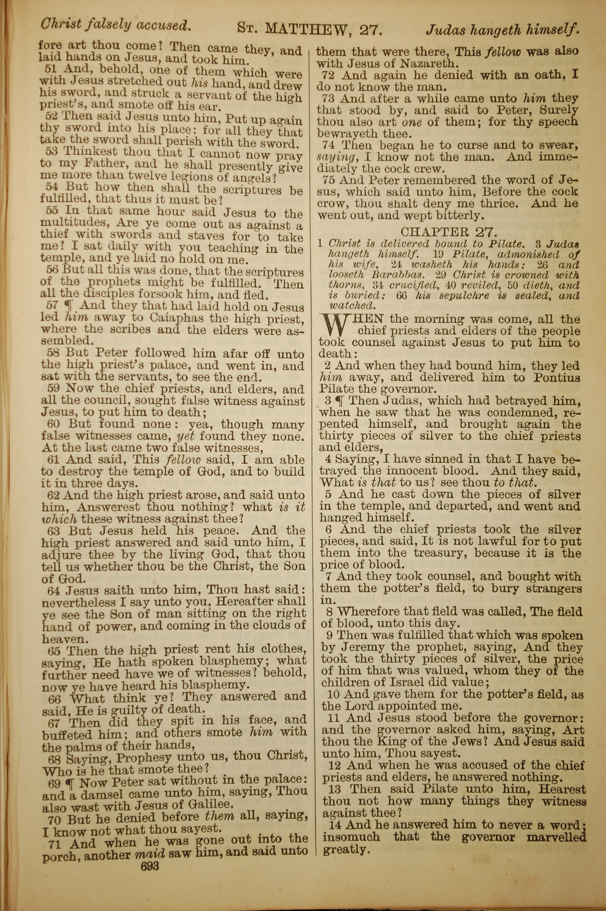 1886年英文圣经 马太福音 26 章 51 节到 27 章 14 节