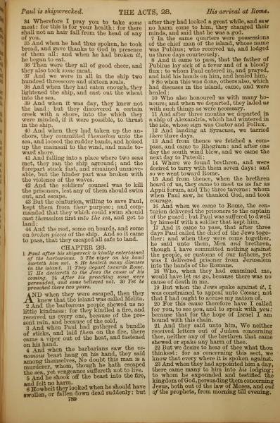 1886年英文圣经 使徒行传 27 章 34 节到 28 章 23 节