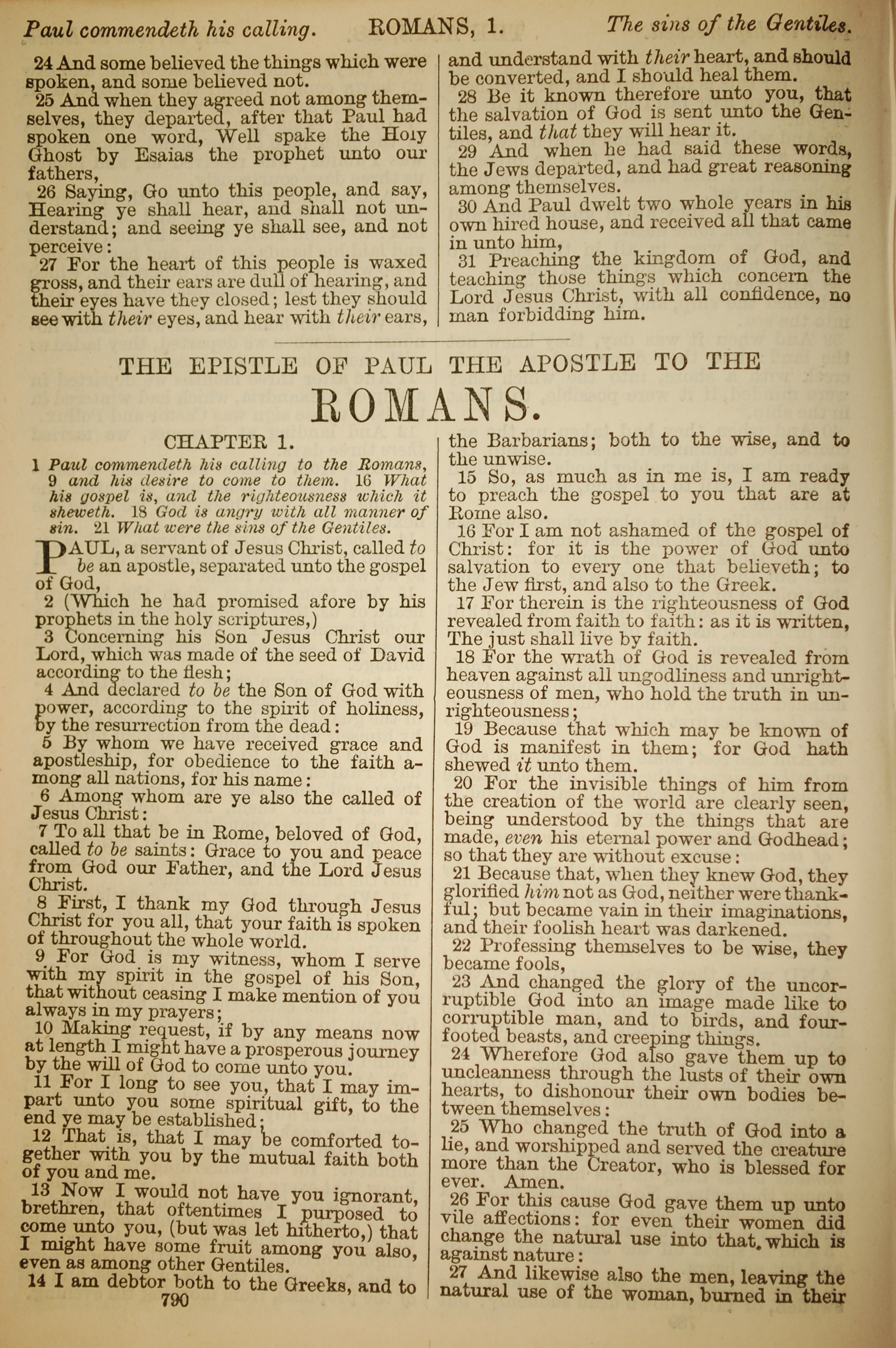 1886年英文圣经 罗马书 1 章 1 节到 1 章 27 节