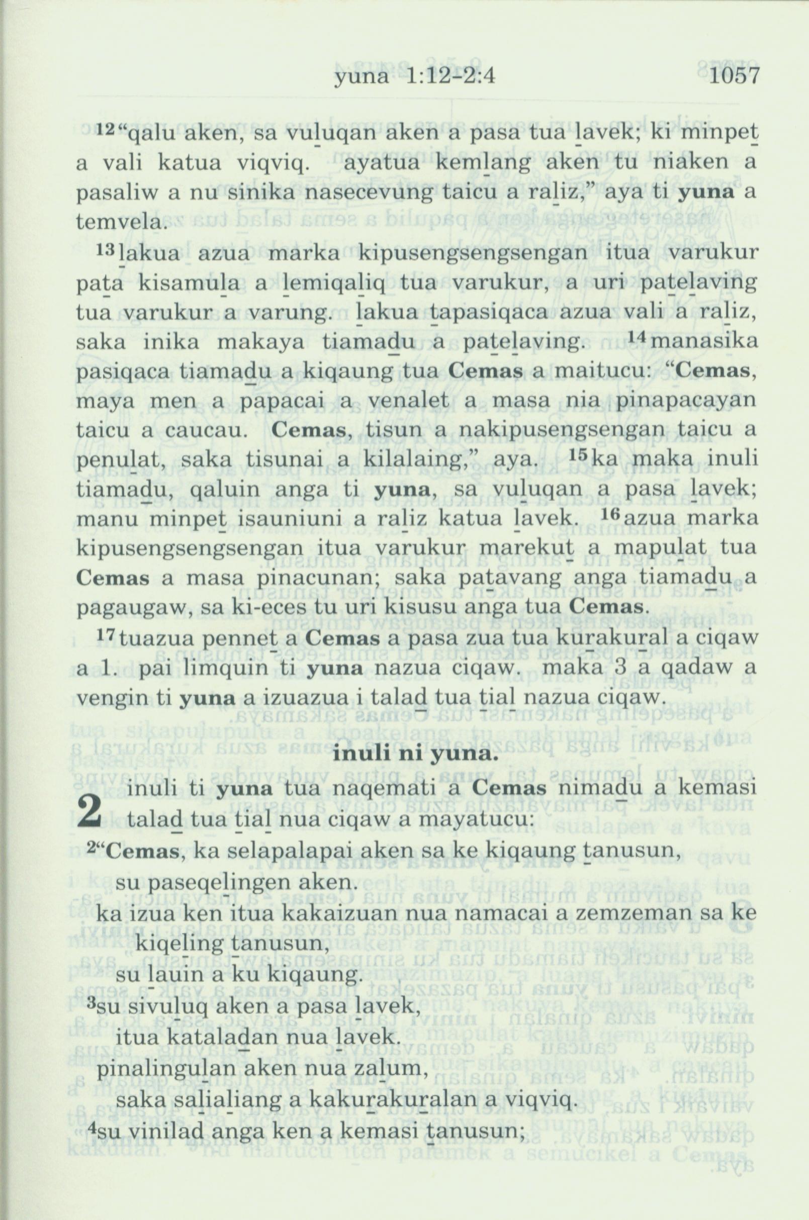 1993年新旧约全书 约拿书 1 章 12 节到 2 章 4 节