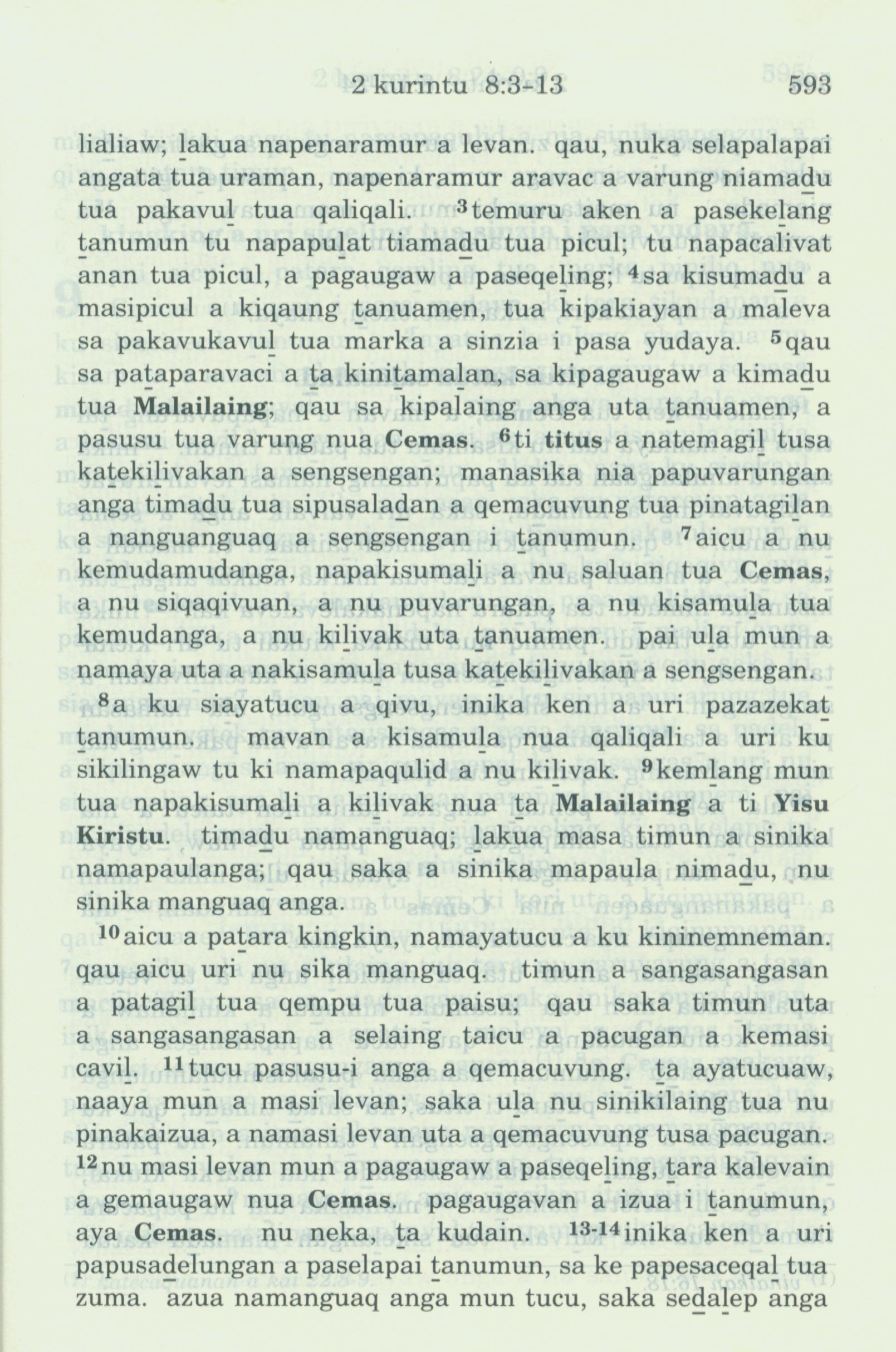 1993年新旧约全书 哥林多后书 8 章 3 节到 8 章 13 节