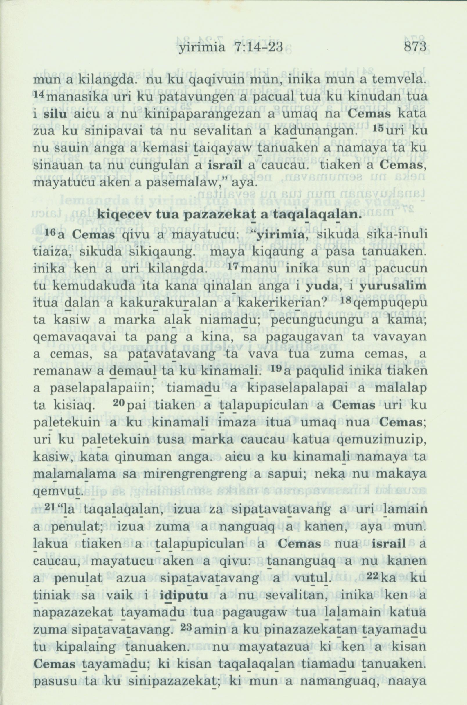 1993年新旧约全书 耶利米书 7 章 14 节到 7 章 23 节