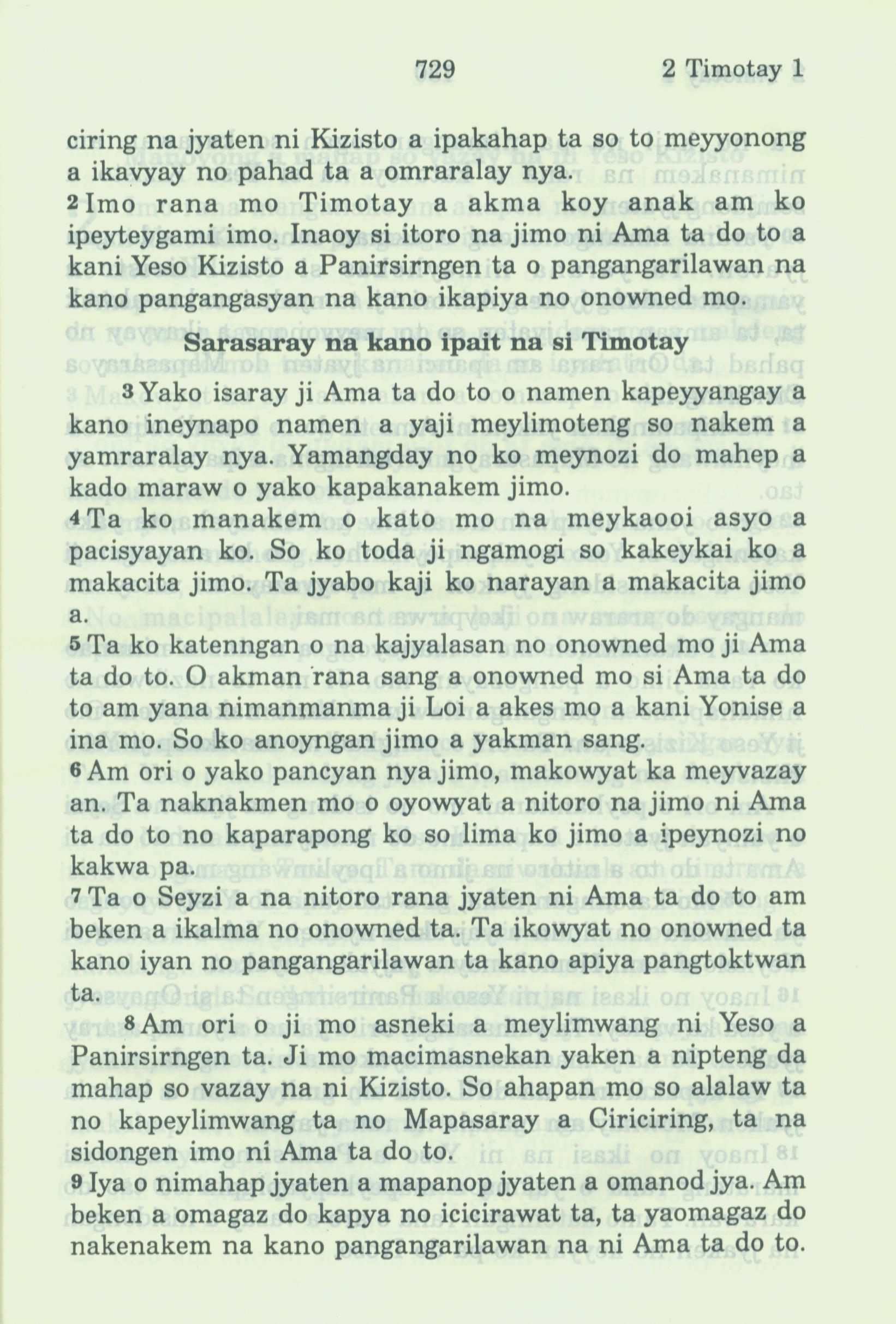 1994年新约全书 提摩太后书 1 章 2 节到 1 章 9 节