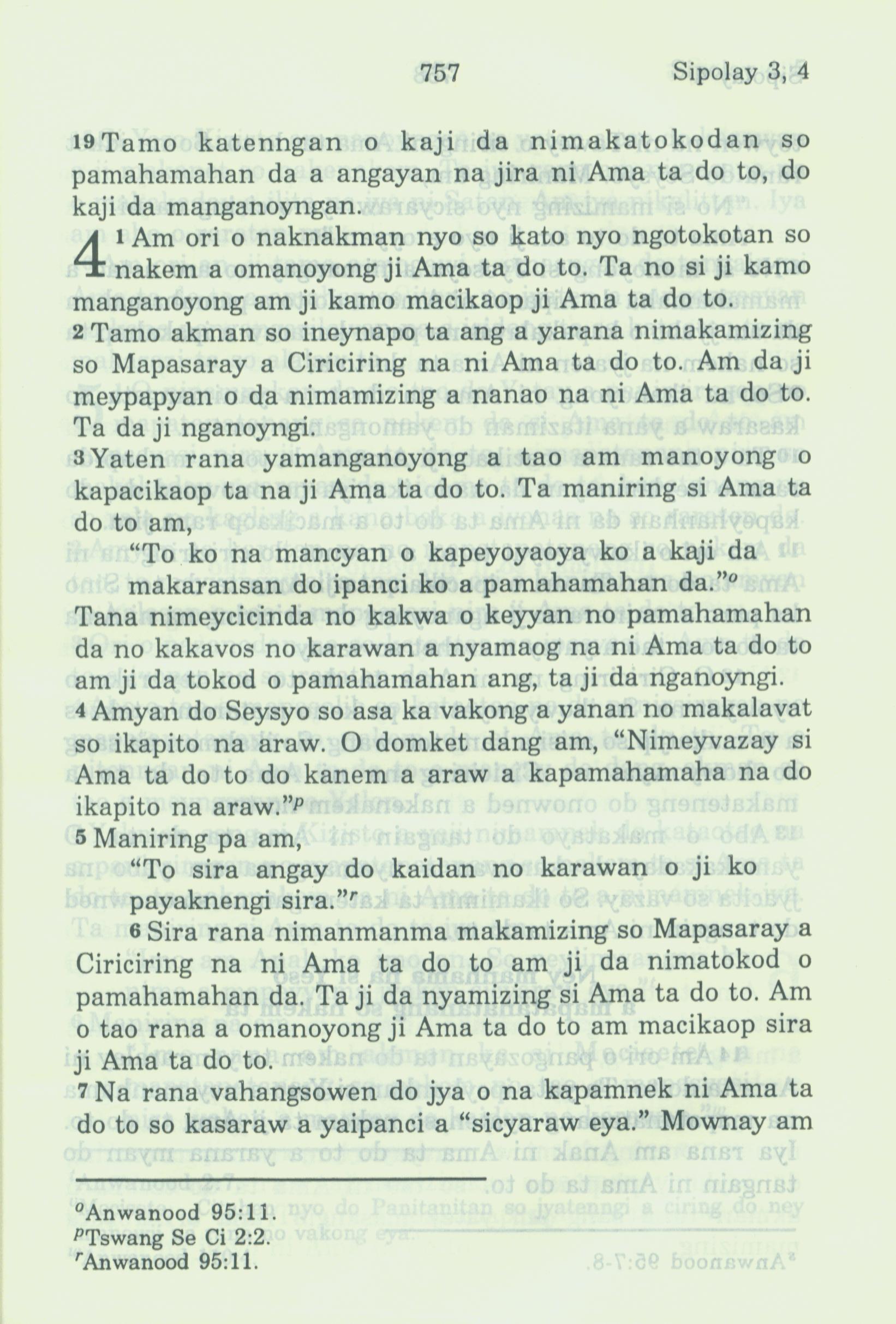 1994年新约全书 希伯来书 3 章 19 节到 4 章 7 节