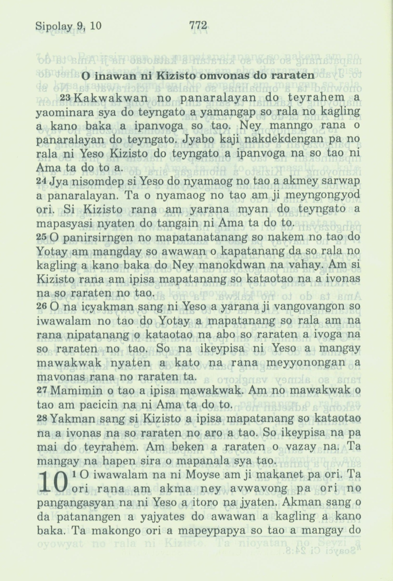 1994年新约全书 希伯来书 9 章 23 节到 10 章 1 节