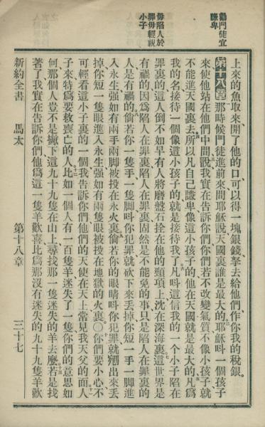 1902年新约全书 马太福音 18 章 1 节到 18 章 13 节
