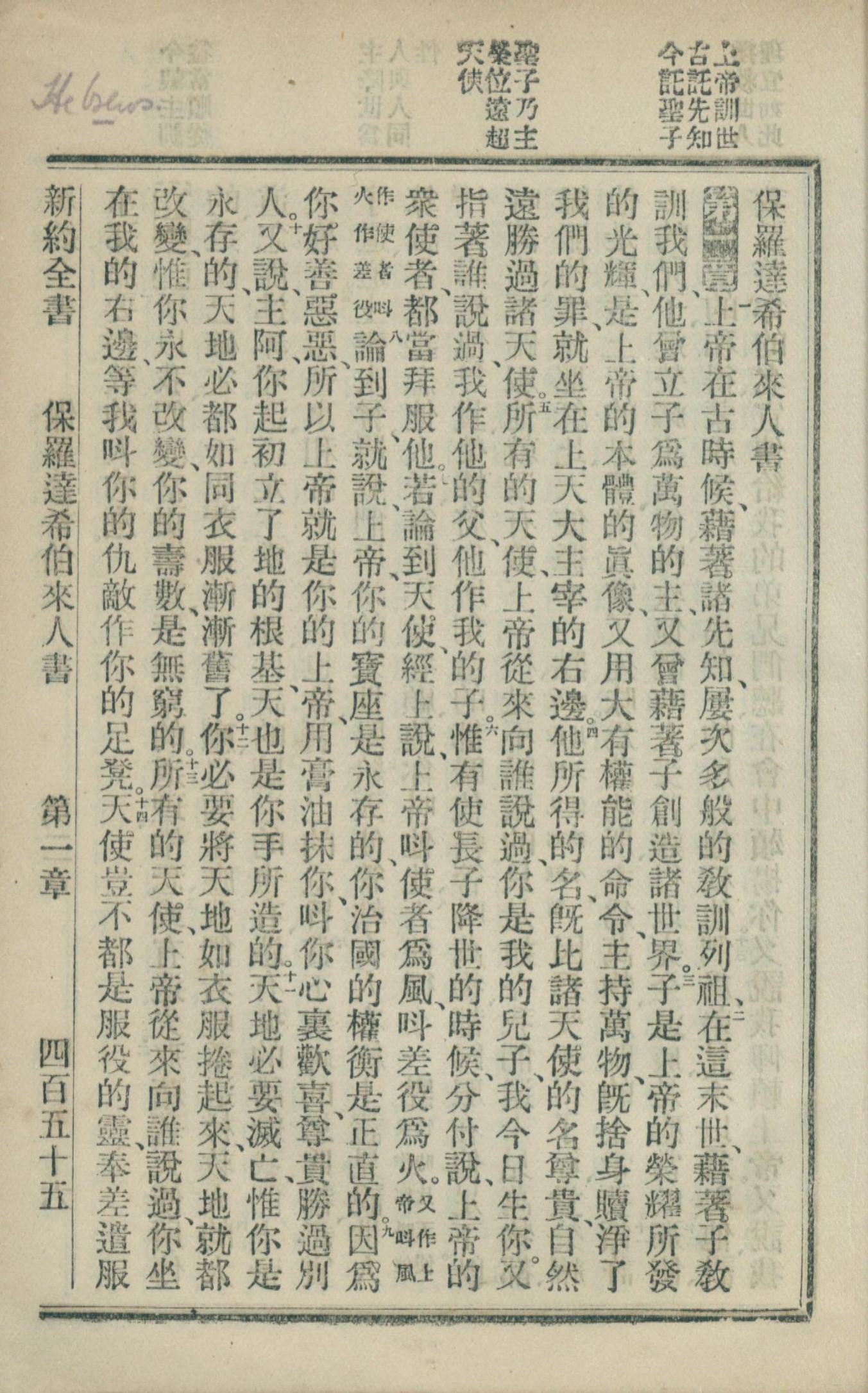 1902年新约全书 希伯来书 1 章 1 节到 1 章 14 节