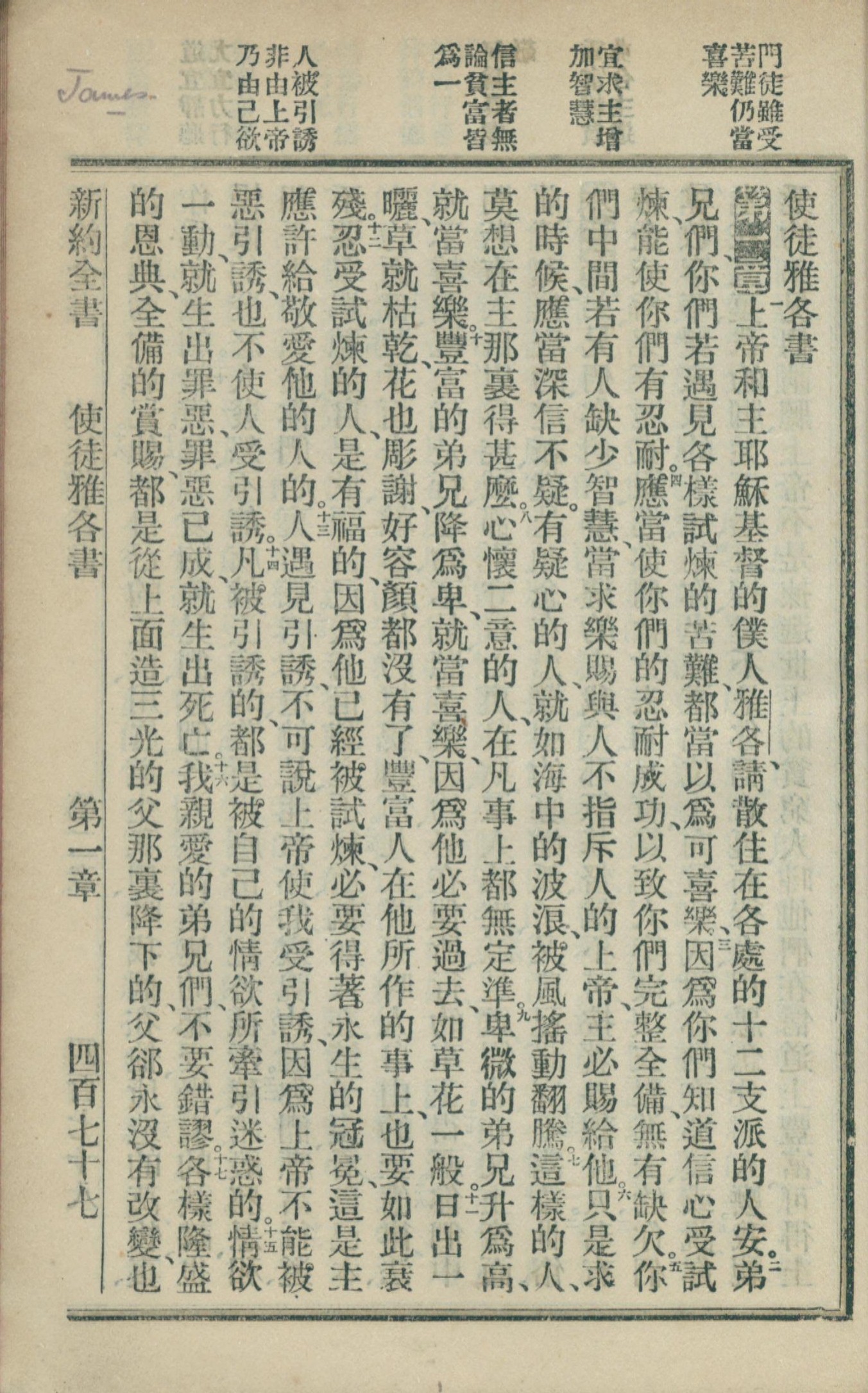 1902年新约全书 雅各书 1 章 1 节到 1 章 17 节