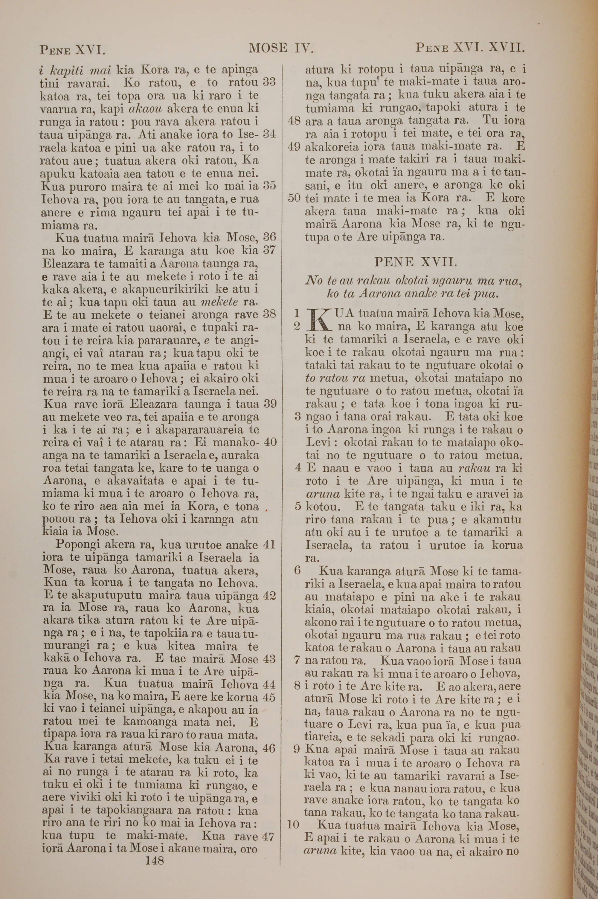 1851年BIBILA TAPU RA 民数记 16 章 33 节到 17 章 10 节